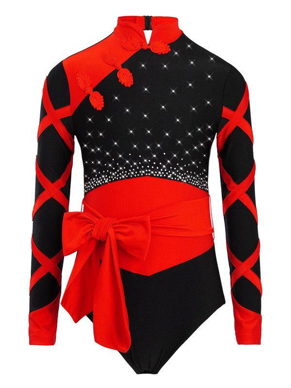 The long-sleeve provides more coverage and is suitable for different temperatures, while the rhinestones and color-block design bring a fashionable and eye-catching look.