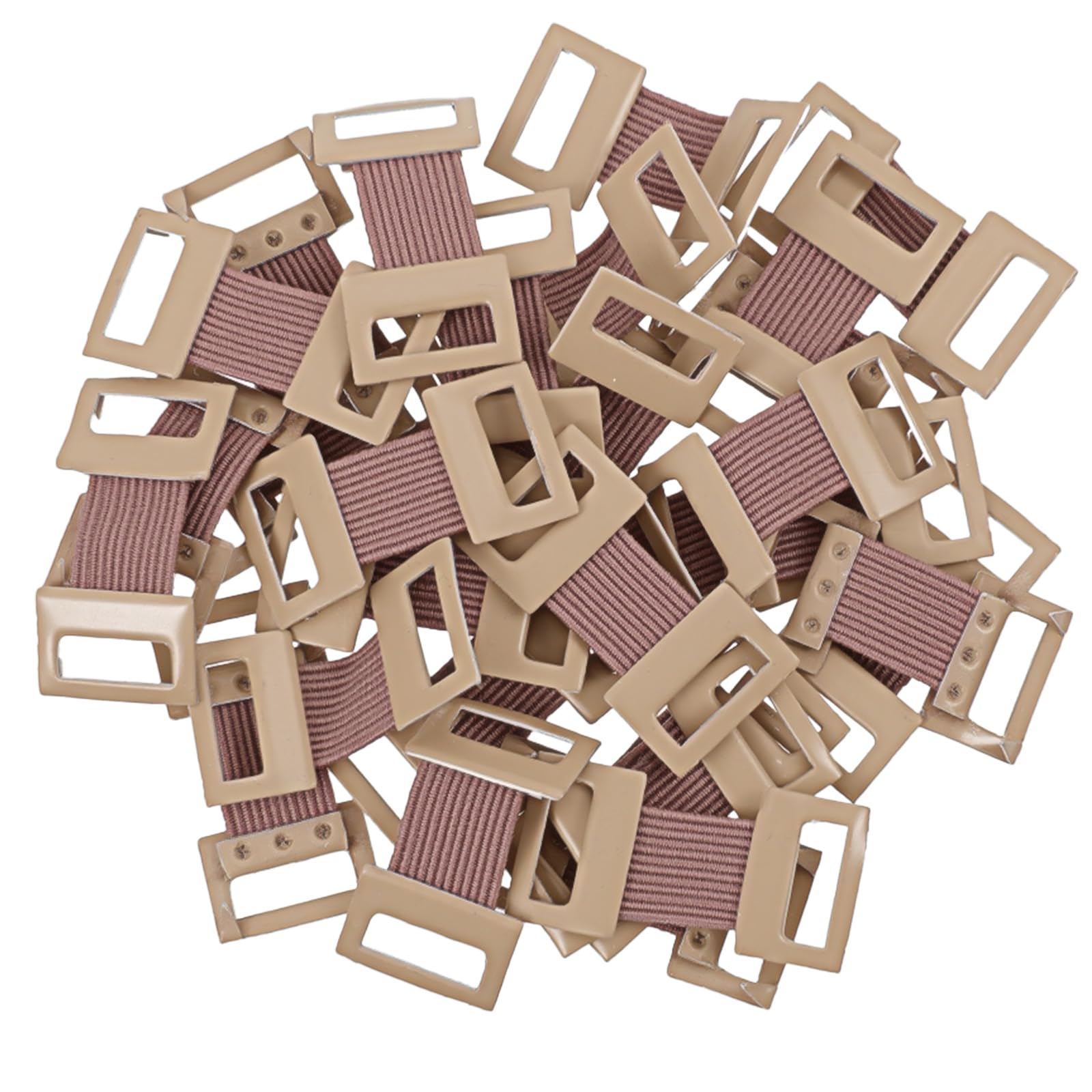 This practical 30-pack of elastic bandage clips provides a reliable fastening solution for various medical and athletic bandaging needs. Measuring 3x1.5cm, these brown aluminum alloy clips with spandex components offer secure closure for elastic bandage materials without adhesive attachment. The design allows for adjustable tension control when securing bandage wrap on different body areas, potentially providing comfortable yet firm fastening for compression therapy, sports support, or wound care applications. These reusable fasteners clips work with multiple bandage types including gauze wrap, stretch bandages, and other elastic bandage wrap materials that require secure endpoints.