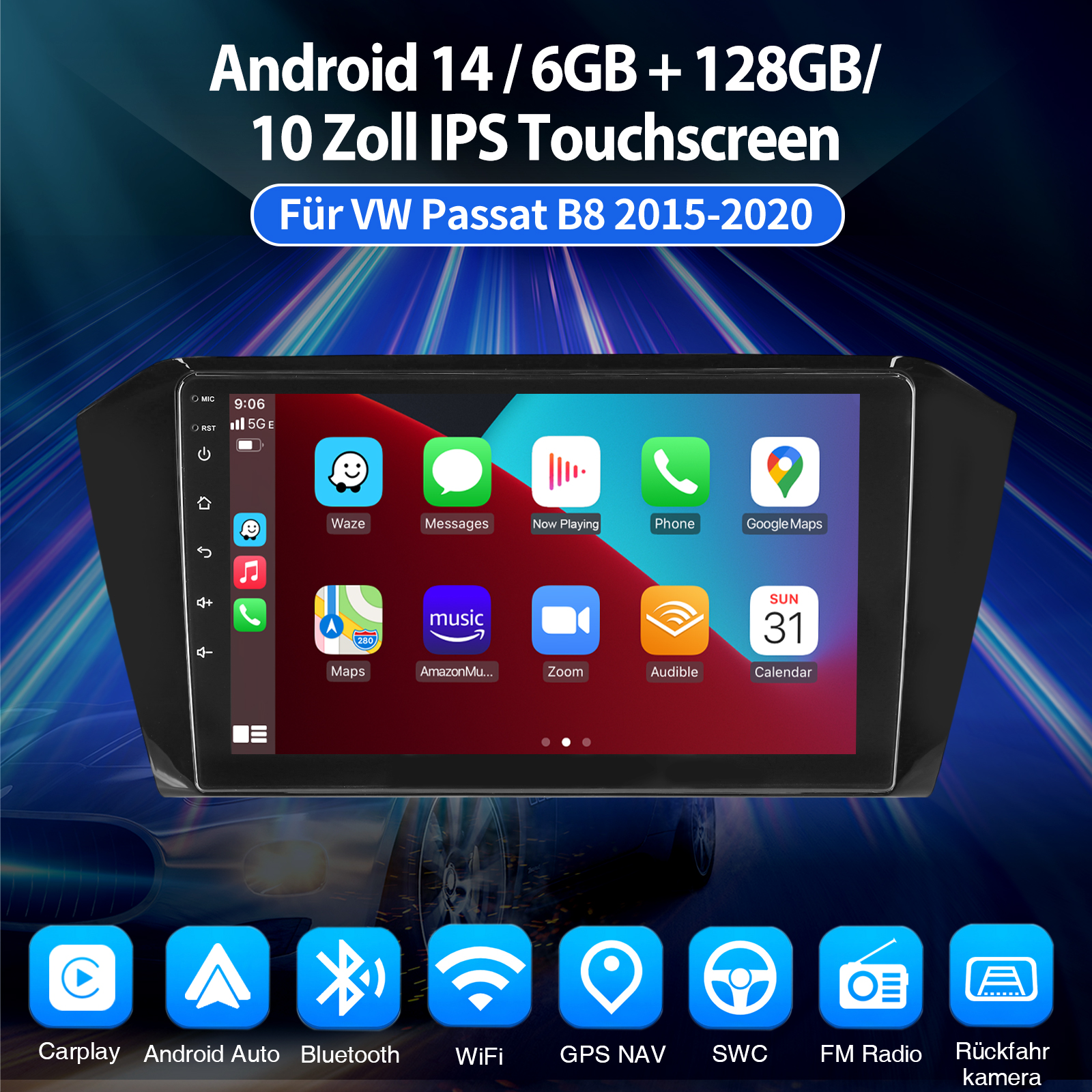 10 Zoll Android 14 Autoradio Für VW Passat B8 Magotan 2015-2020: Das Android Autoradio mit 10" 1280* 720 HD QLED kapazitivem Touchscreen, 6GB RAM und 128GB ROM ermöglicht das Herunterladen Ihrer Lieblings-Apps und -Videos, damit das Autofahren nicht mehr langweilig wird. Kein zusätzlicher Rahmen, kein Kabelwechsel, Plug and Play.