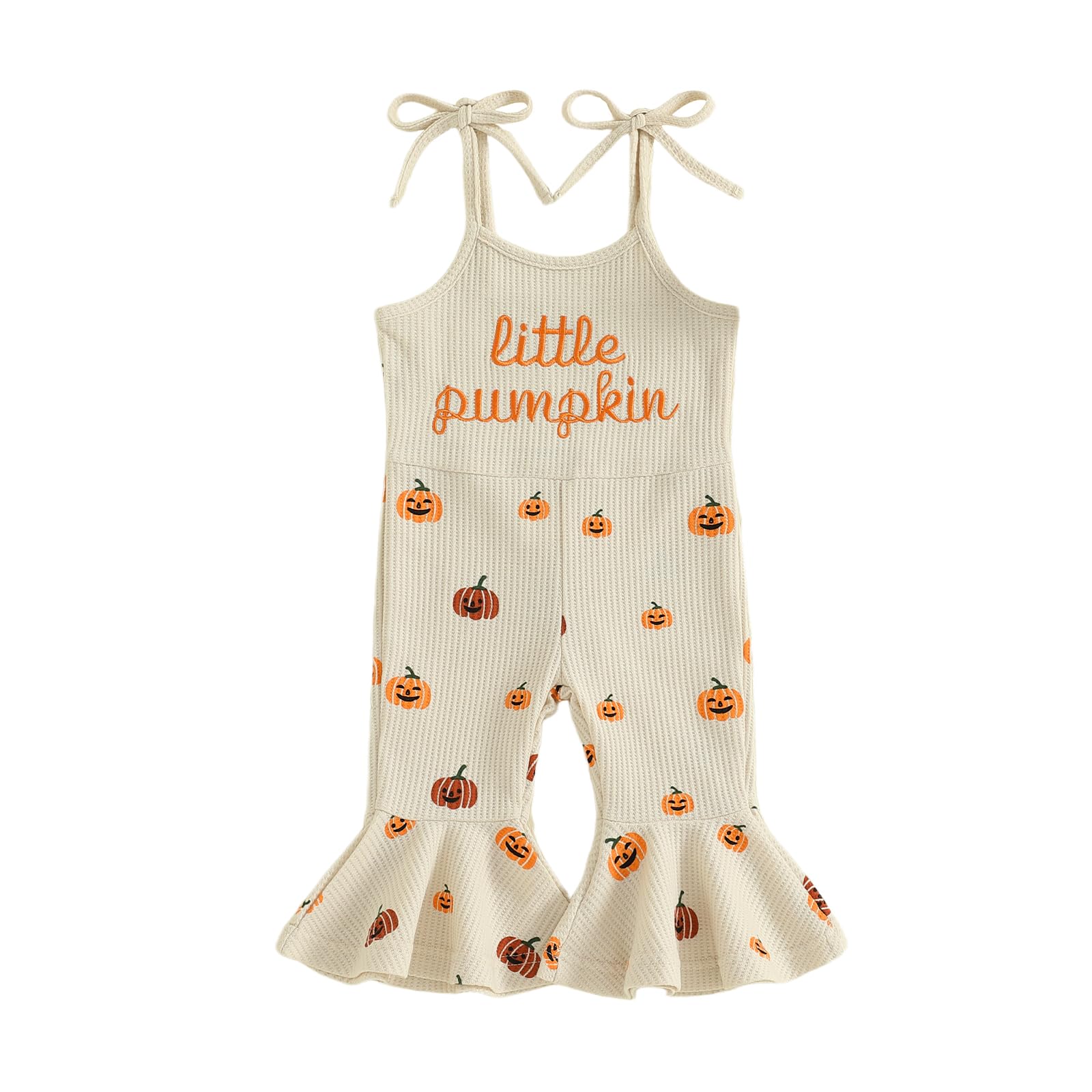 Ayalinggo Baby Girl Halloween Outfit Little Pumpkin Overalls Toddler Romper Spaghetti Strap Jumpsuit Family Matching Outfits Beige Little Pumpkin 2-3T