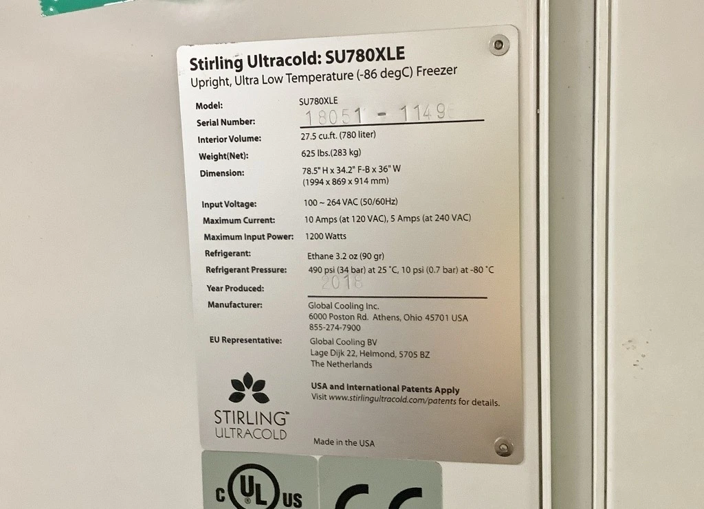 - Stirling Ultracold ULT Freezer | CAT# SU780XLE | Used Model | MSRP: $26,175.06