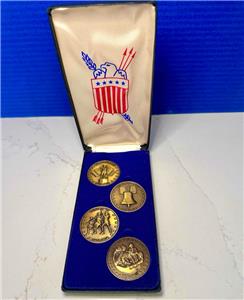 Bicentennial Commemorative MEDALLIONS 1776-1976, Set of 4 in Case