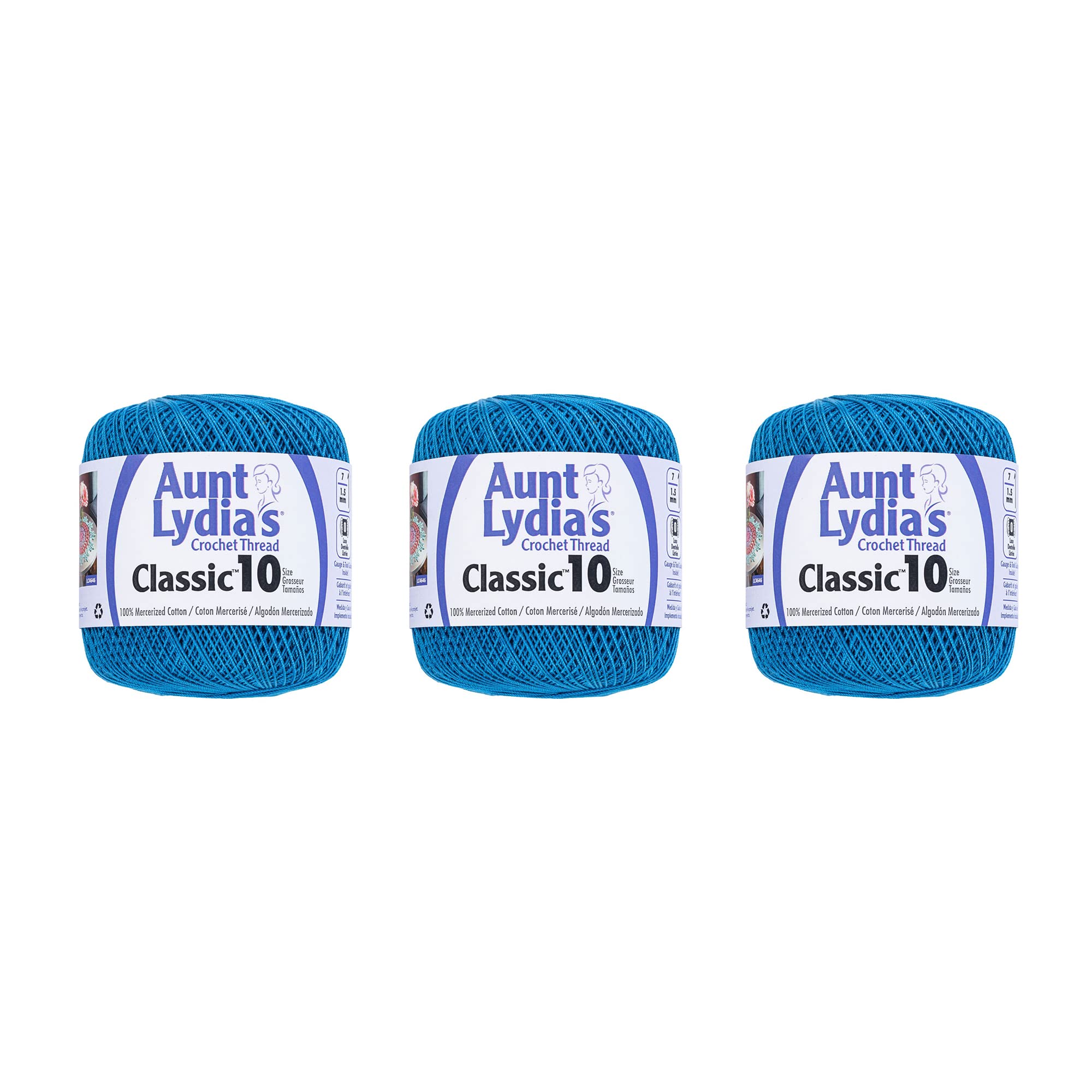 - Aunt Lydia’s Crochet Thread is for makers who like to crochet with thread. Aunt Lydia’s Classic 10 thread is perfect for traditional thread crochet projects like tablecloths and doilies. Aunt Lydia’s Fashion 3 is a size 3 crochet thread. It is a lustrous thread and drapes beautifully for shawls and accessories. It is thicker and works up faster than smaller size threads.