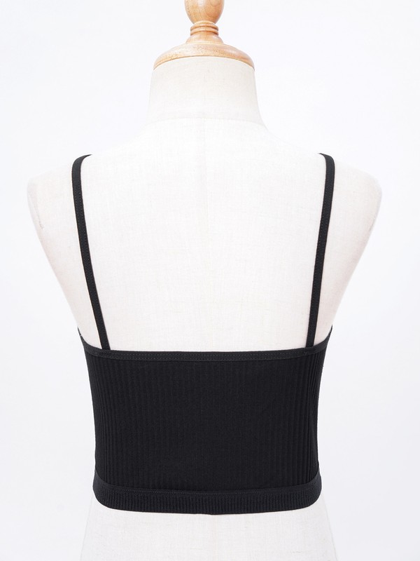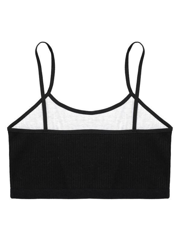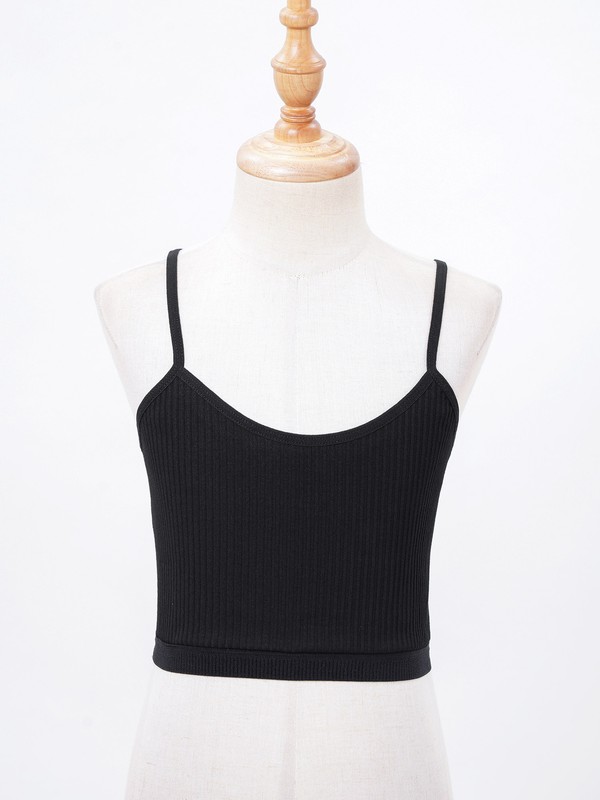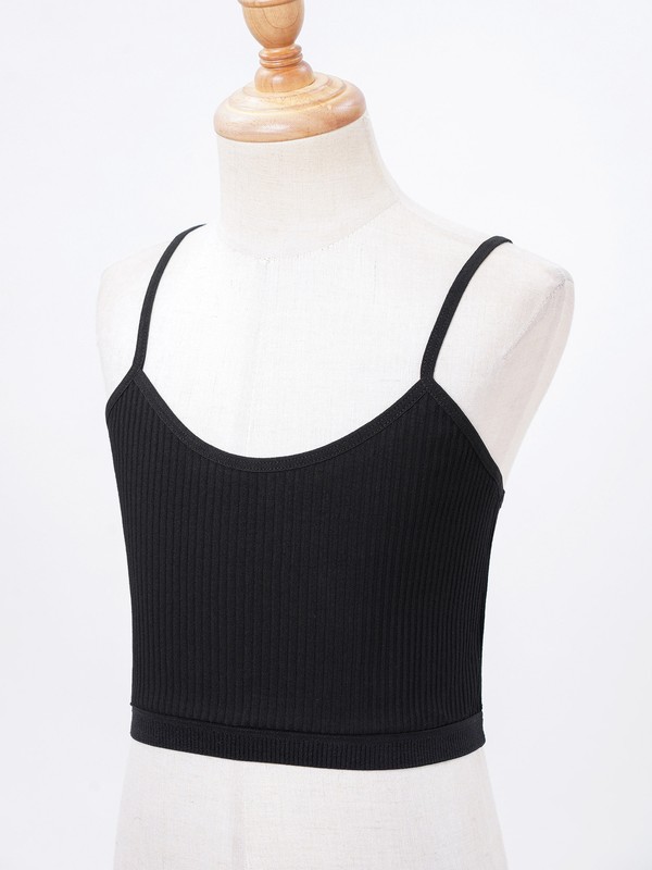 Spaghetti straps vest for kids girls, ribbed design, solid color, cropped length.