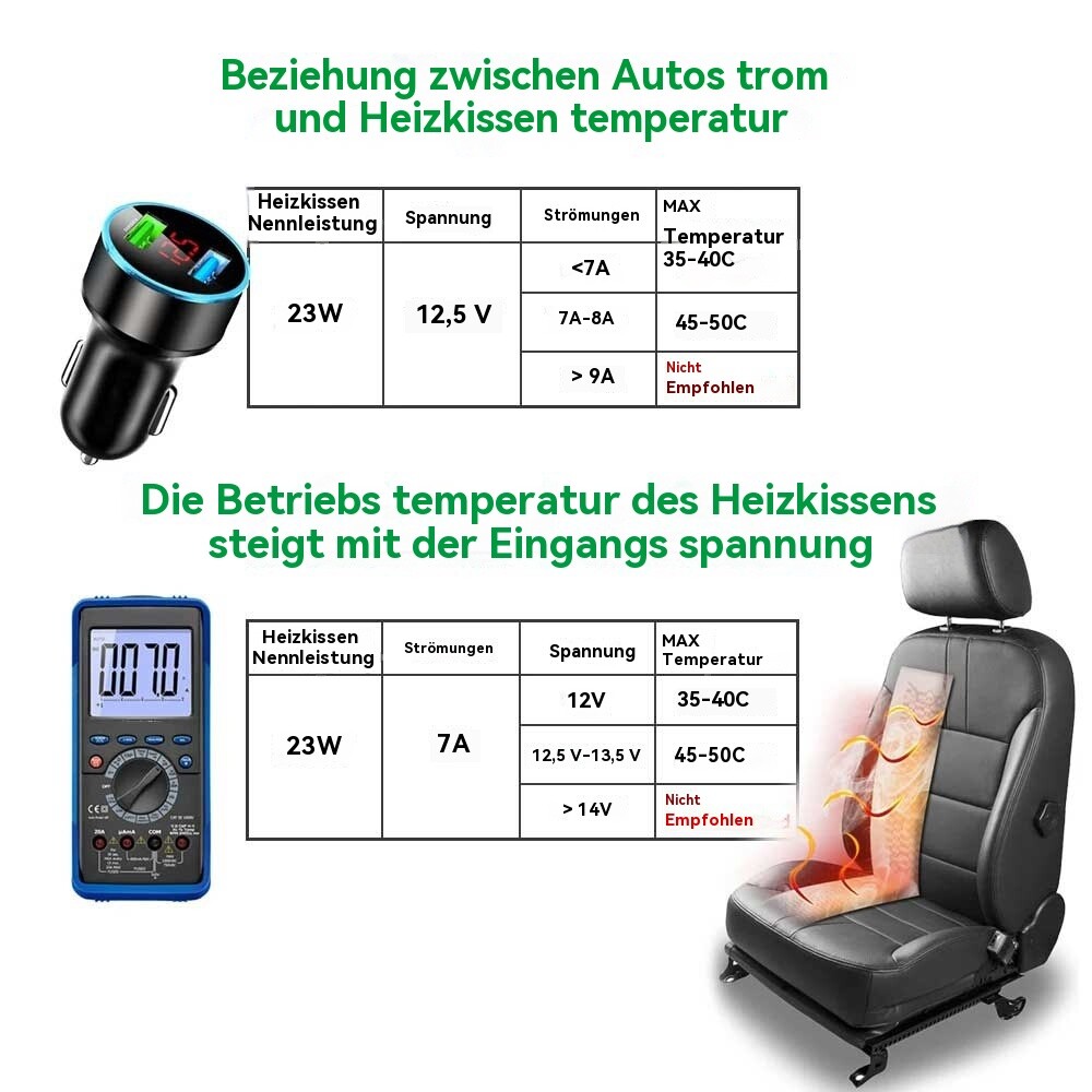 Passt auf alle Sitze wie Auto, SUV, LKW, Wohnmobil, Boot, universelle Passform auf jedem 12V DC System auf Leder.