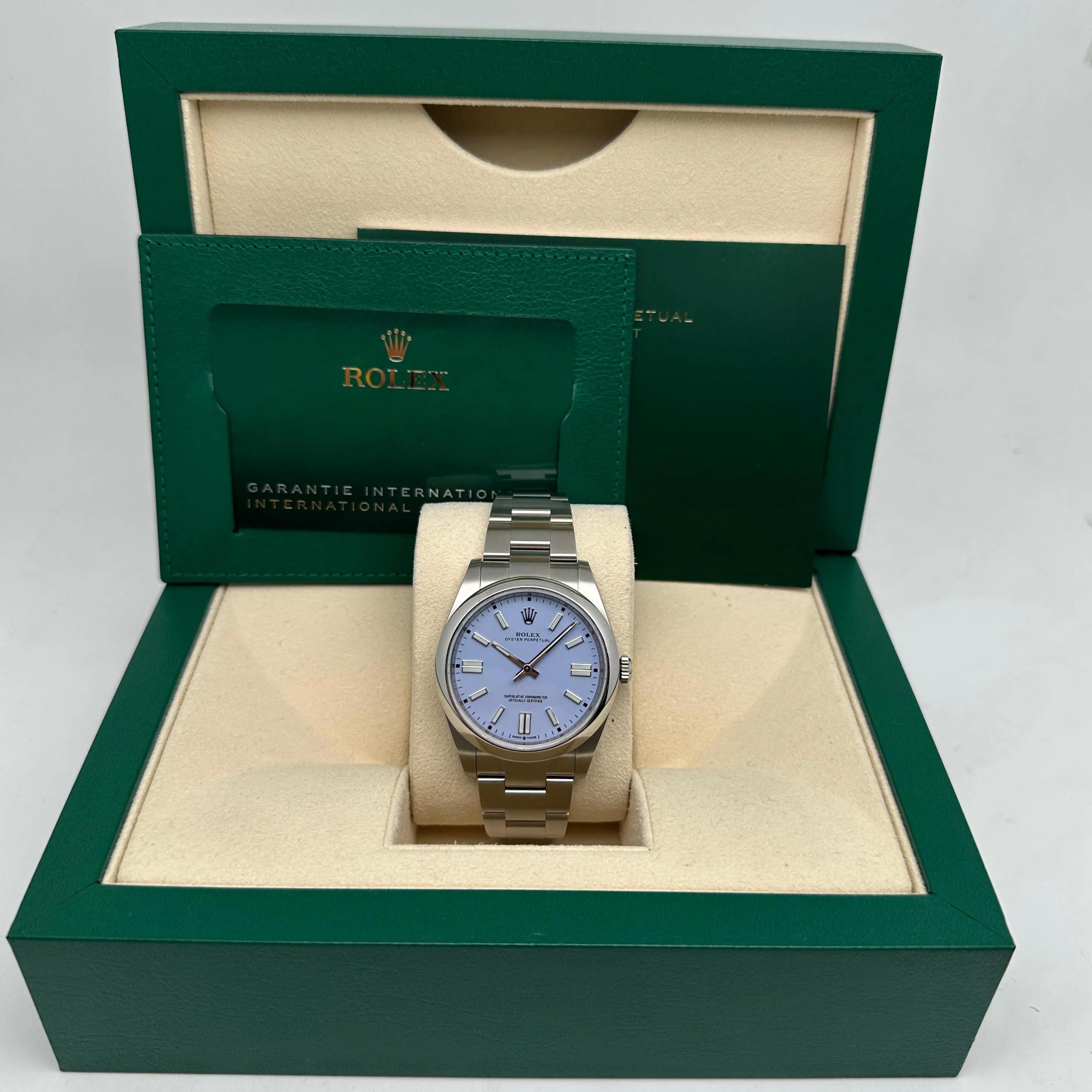 Rolex Oyster Perpetual Acier Personnalisé Bleu Turquoise Cadran Watch 124300 B&p