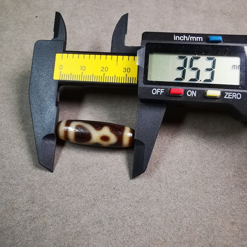 This unique Dzi beads was collected and crafted at the year 1990s, it has Kubera (god of wealth) pattern,good color and weathered texture, full of vicissitudes of life.