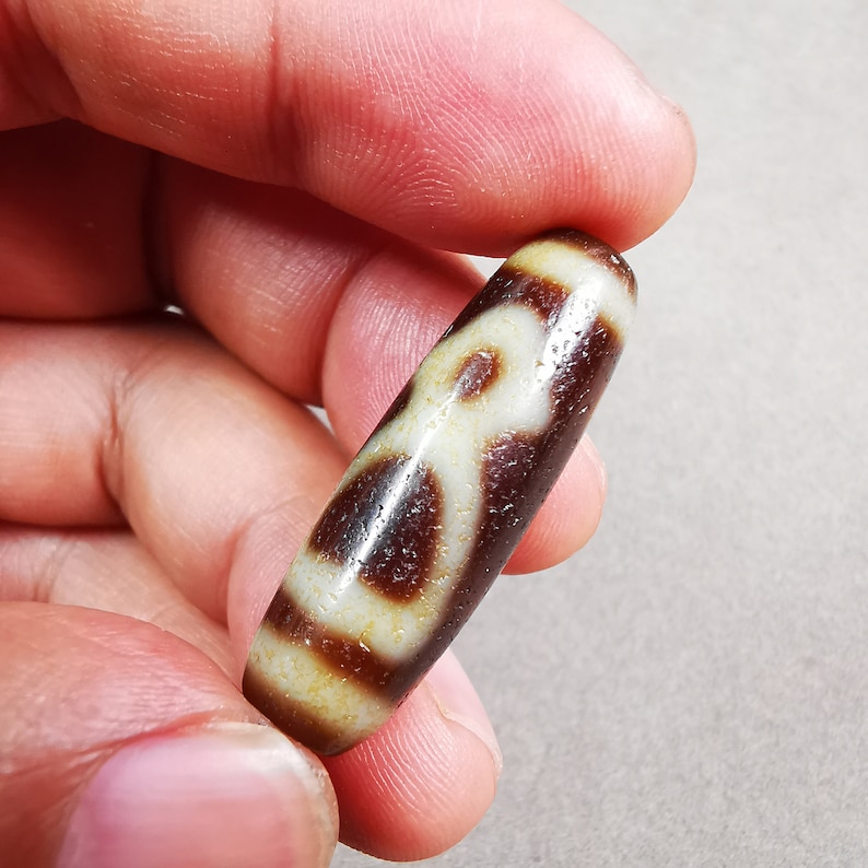 Dzi beads are precious jewelry from Tibetan culture which are believed to possess the power of bringing good fortune to the owners, such as protection from ill luck, attracting wealth and prosperity, fostering good health and warding against evil.