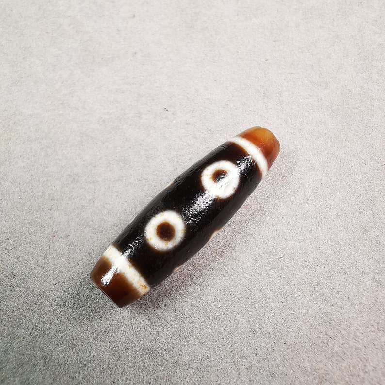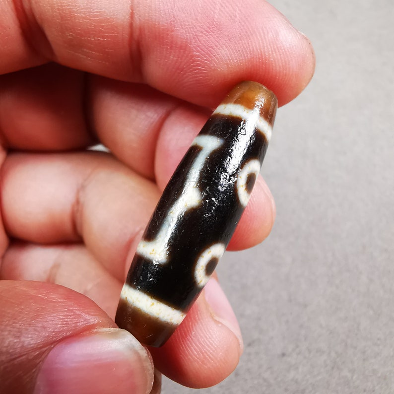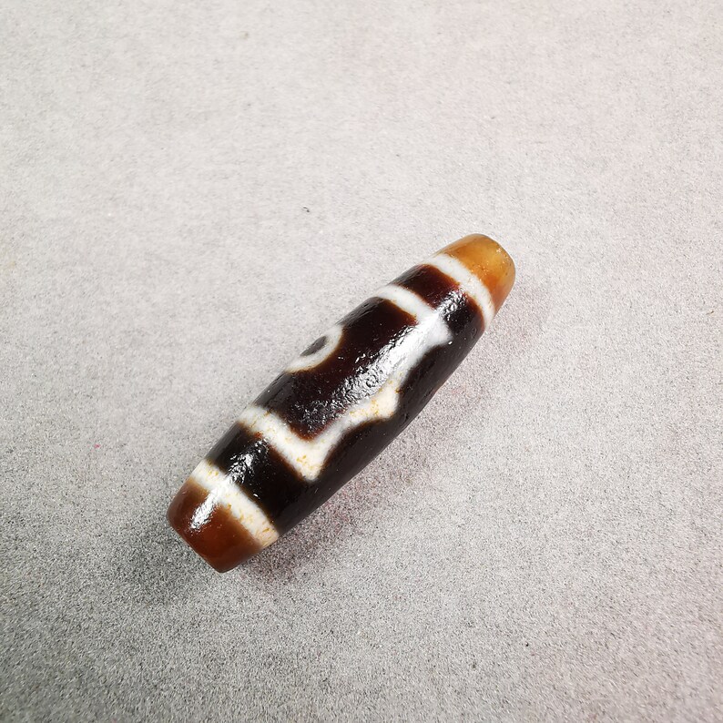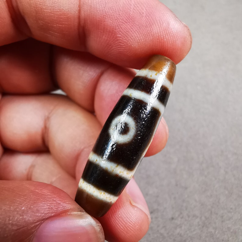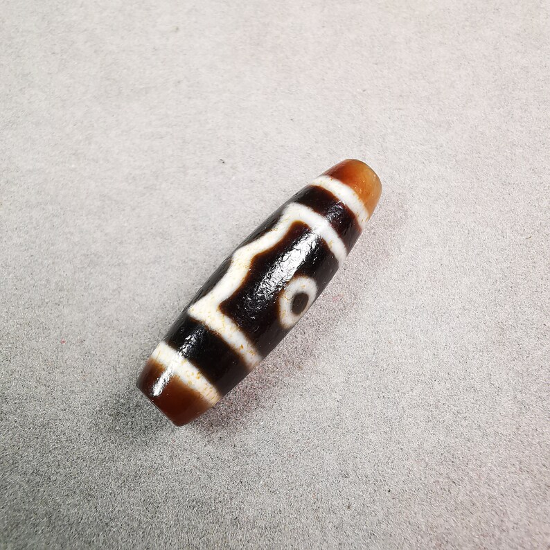 This unique Dzi beads was collected and crafted at the year 1990s, it has 3 eyed pattern,good color and weathered texture, full of vicissitudes of life.