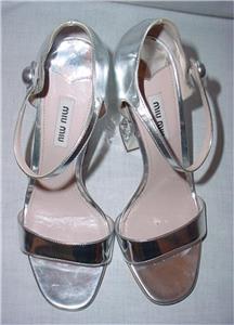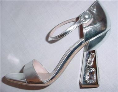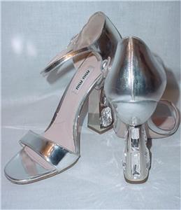 Miu Miu Women’s Metallic Leather Jeweled-Heel Sandals