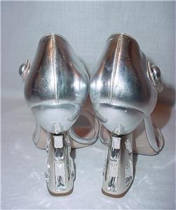 Glimmering metallic leather silhouette, featuring a sculptural heel encrusted with elaborate Swarovski crystals.
