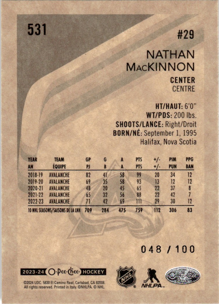 | 2023-24 O-Pee-Chee Update Black Border Nathan MacKinnon /100 Colorado Avalanche |