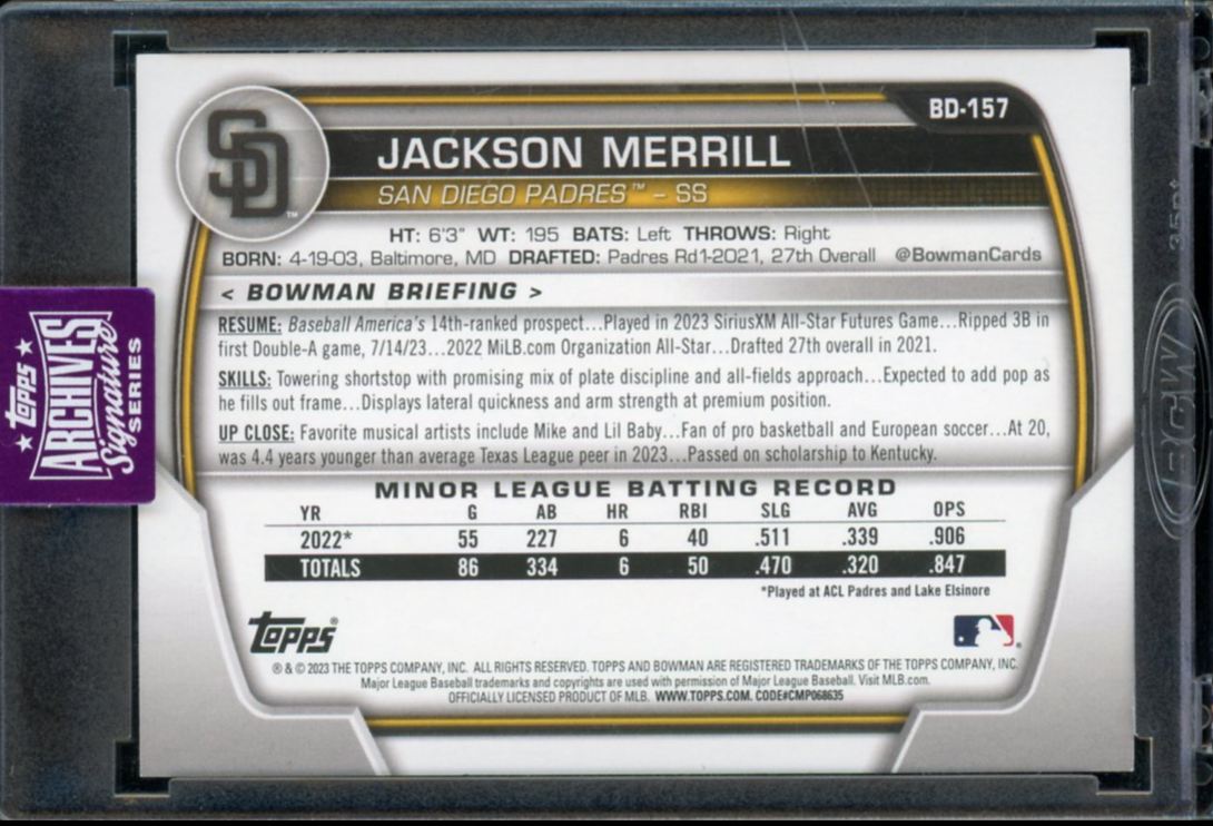 2025 Topps Archives Signature Series Jackson Merrill Auto /20 San Diego Padres