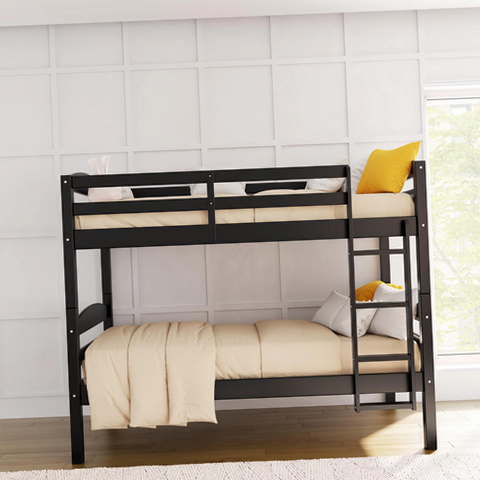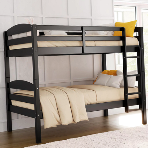 [Create fun and restful environment with the Better Homes & Gardens Leighton Twin-over-Twin Bunk Bed. An American classic, its solid wood construction features clean and simple lines, creating a timeless look that easily coordinates with any room style. Available in multiple color options, the bunk bed’s horizontal slats and slightly curved headboards come together to pay homage to its Craftsman inspired design. The Leighton is equipped with two full-length guardrails on the top bunk and a secure, easy-to-climb 4-step ladder providing access for children while leaving parents worry free. The Better Homes & Gardens Leighton Twin-over-Twin Bunk Bed can be unstacked to become two stand-alone beds making this a wonderful, versatile choice your children and their friends will love.]