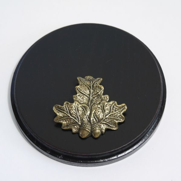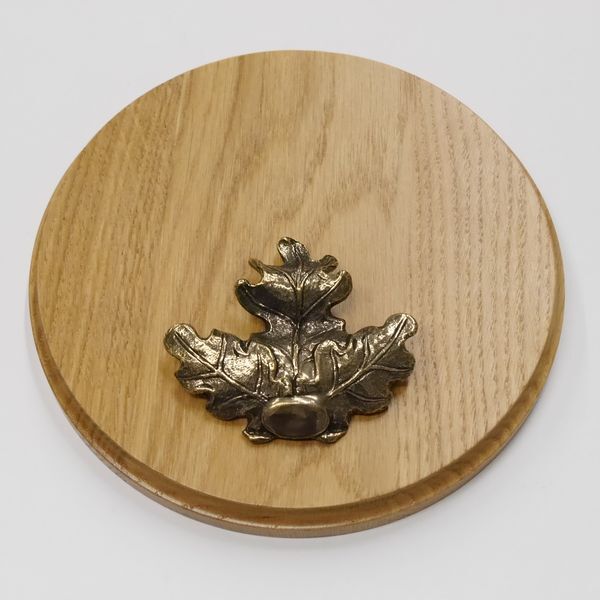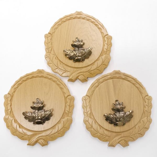 Brattee di foglie di quercia con testa di cinghiale