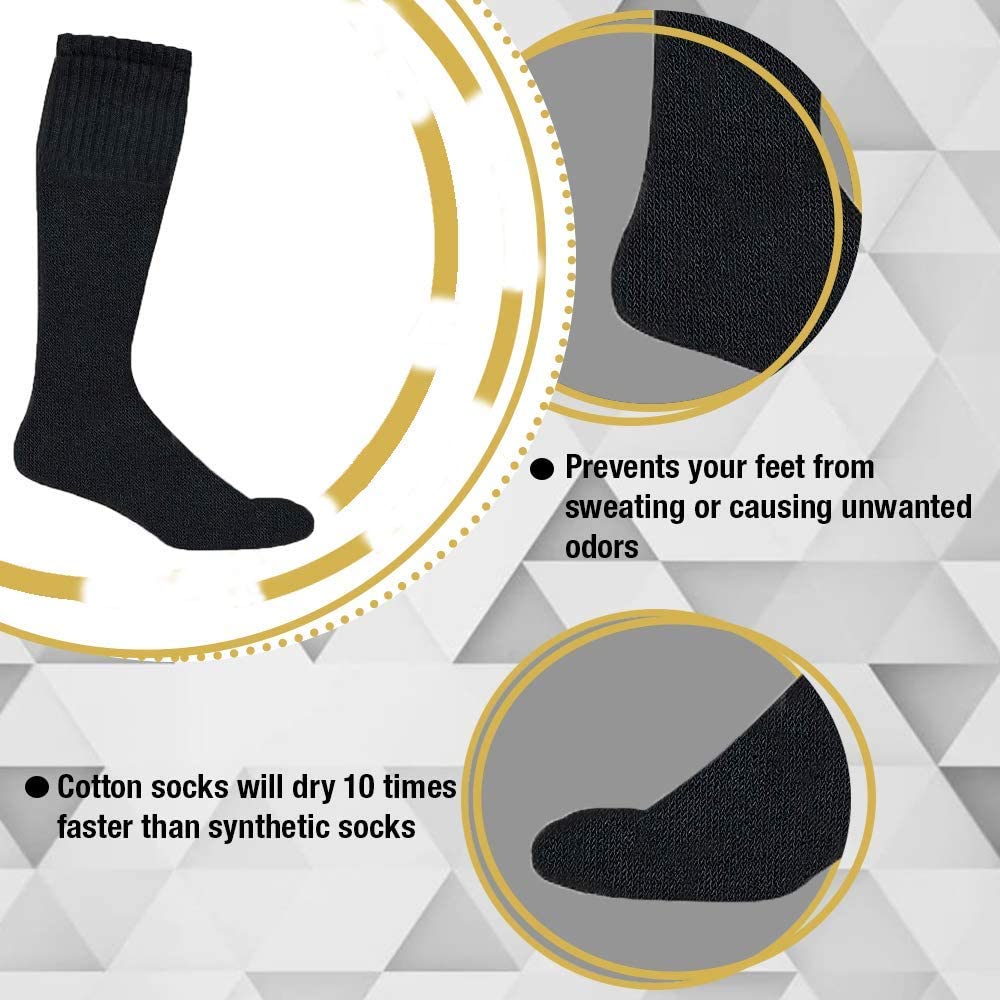 • 24 PAIRS OF MEN BLACK COTTON TUBE SOCKS: Planning a event or buying for a cause becomes simplified and cost effective. Purchase a variety of pack sizes, colors and sizes for Men Women and Children.
