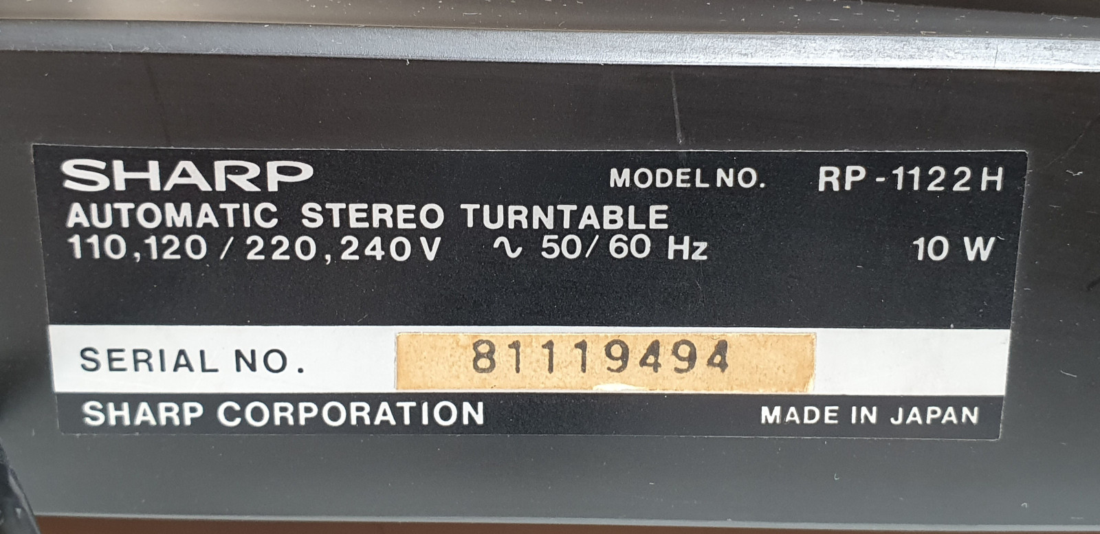 Der Sharp RP-1122H ist ein klassischer, halbautomatischer Plattenspieler mit Riemenantrieb, der Ende der 1970er Jahre (ca. 1979) in Japan hergestellt wurde. Er ist für seine solide Bauweise bekannt und wird oft dem Vintage-Hifi-Segment zugeordnet.