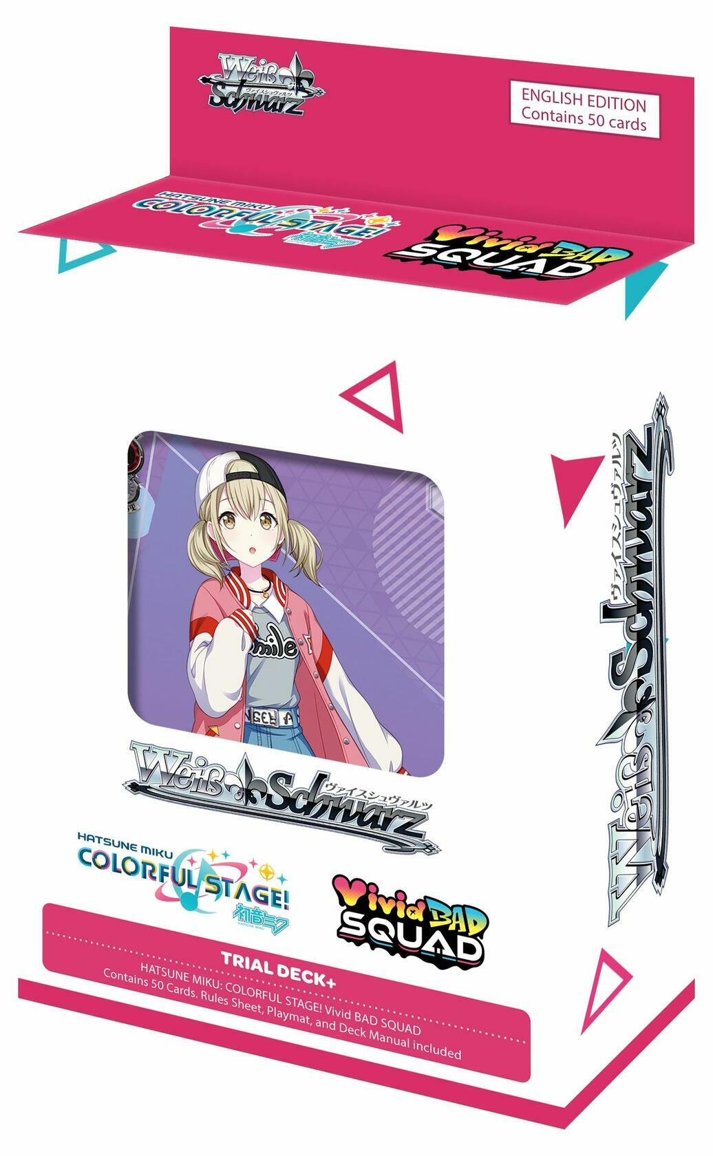 The characters from the popular mobile game, "HATSUNE MIKU: COLORFUL STAGE!" arrive on the stage of Wei Schwarz! Every deck contains 2 shiny cards! The cards in the above Trial Decks may be used together with cards with card numbers beginning with "PJS/"!