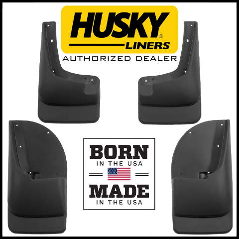 There are plenty of universal mud guards on the market that, when mounted, look so-so and provide about the same degree of protection, and if you’re looking for such gear you’re in the wrong place. Husky Liners custom designs each set of mud guards to match the fender contours of the particular truck or SUV, so you get the best fit, style and coverage possible. These custom mud guards are designed for full tire tread coverage and maximum length, to prevent damage to your vehicle, keep your running boards clean, and minimize flying road debris.