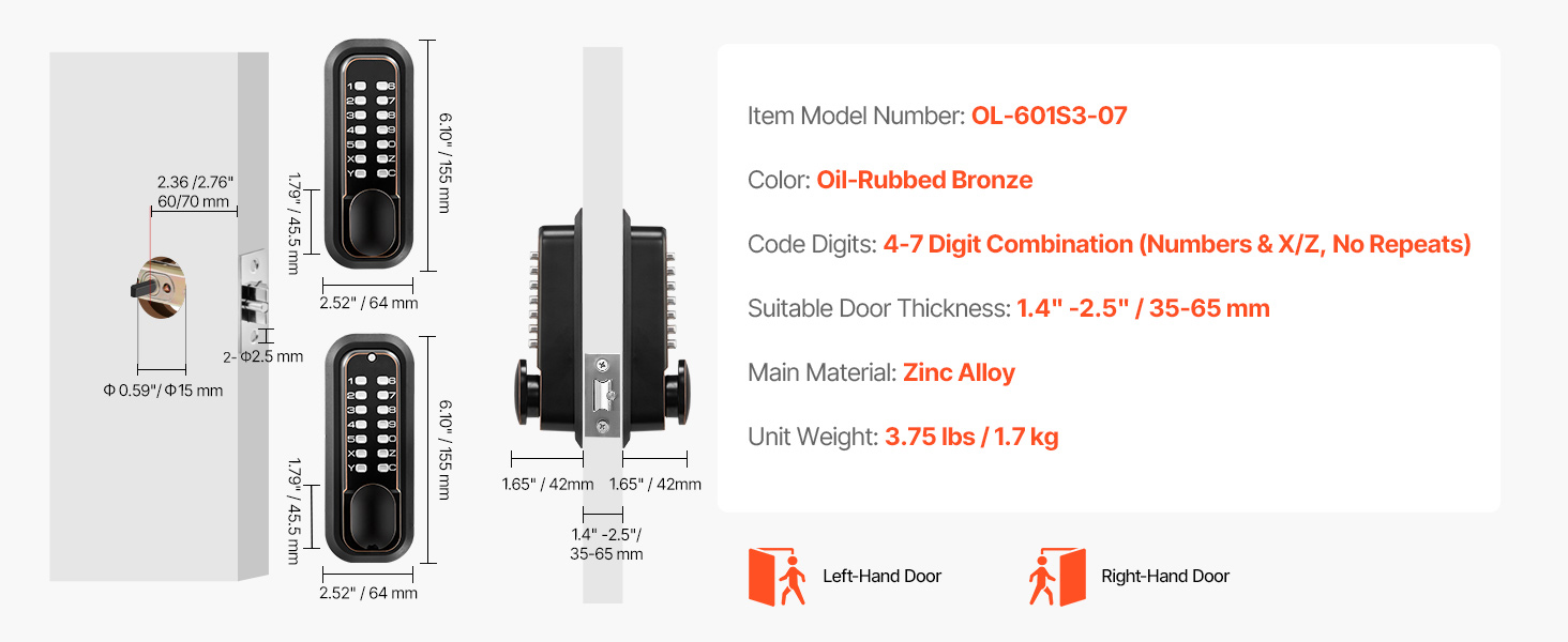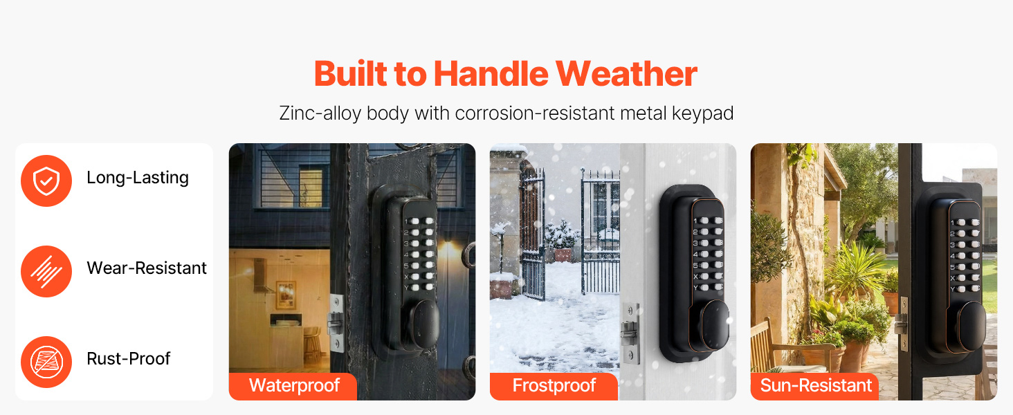 Crafted from durable zinc alloy and coated with a corrosion-resistant finish, this mechanical door lock is designed to endure various weather conditions, including rain, heat, and humidity. It is an excellent choice for outdoor gates, garden doors, and other entrances exposed to the elements.