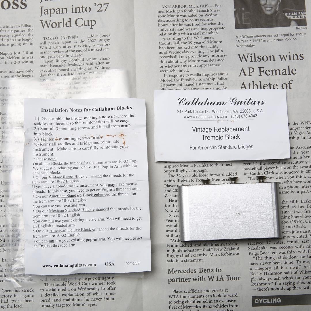 Bras de trémolo guitare Wilkinson USA Tremolo Bridge années 1990 utilisé argent or