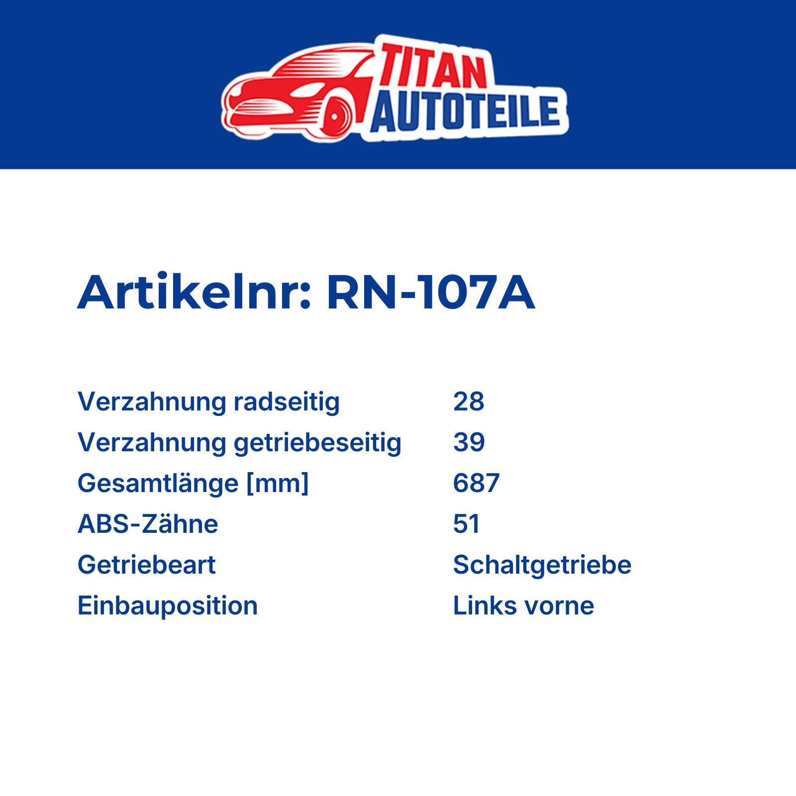 Lieferumfang: 1x Antriebswelle komplett einbaufertig inkl. Befestigungsmaterial Radseitig (Mutter oder Schraube)