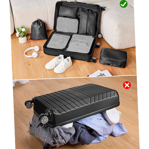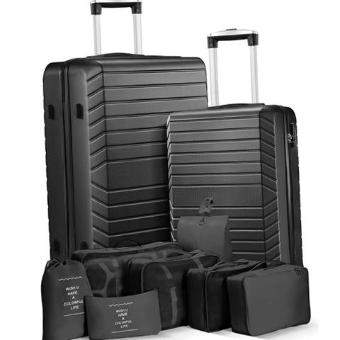 Gowill 2 Piece Hardside Suitcase with 7PC Organizer Bags, Black