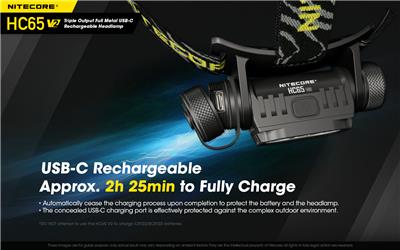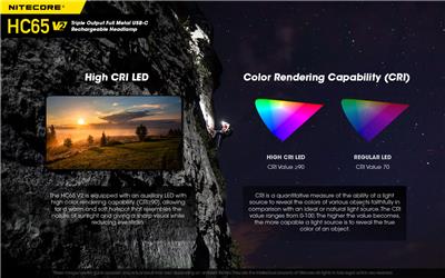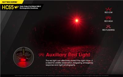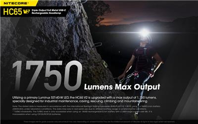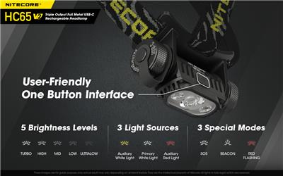 Triple output: primary white, high CRI white, auxiliary red USB-C rechargeable 100 degree wide flood beam One button simple interface 5 brightness levels and 3 special modes 800 hours of runtime Brightness levels White Spotlight: Turbo 1750 Lumens *30 min High 900 Lumens 2hrs 15min Mid 250 Lumens 6 hrs Low 50 Lumens 28 hrs Ultralow 1 Lumen 800 hrs Beacon 1750 Lumens SOS 1750 Lumens Auxiliary Red Light: High 11 Lumen 24 hr Low 3 Lumen 8 hr Flashing 11 Lumen 100 hr Neutral White: High 35 Lumen 20 hr Includes, Nitecore HC65 V2 Headlamp NL1835HP Rechargeable Battery USB-C Charging Cable Headband Bracket |