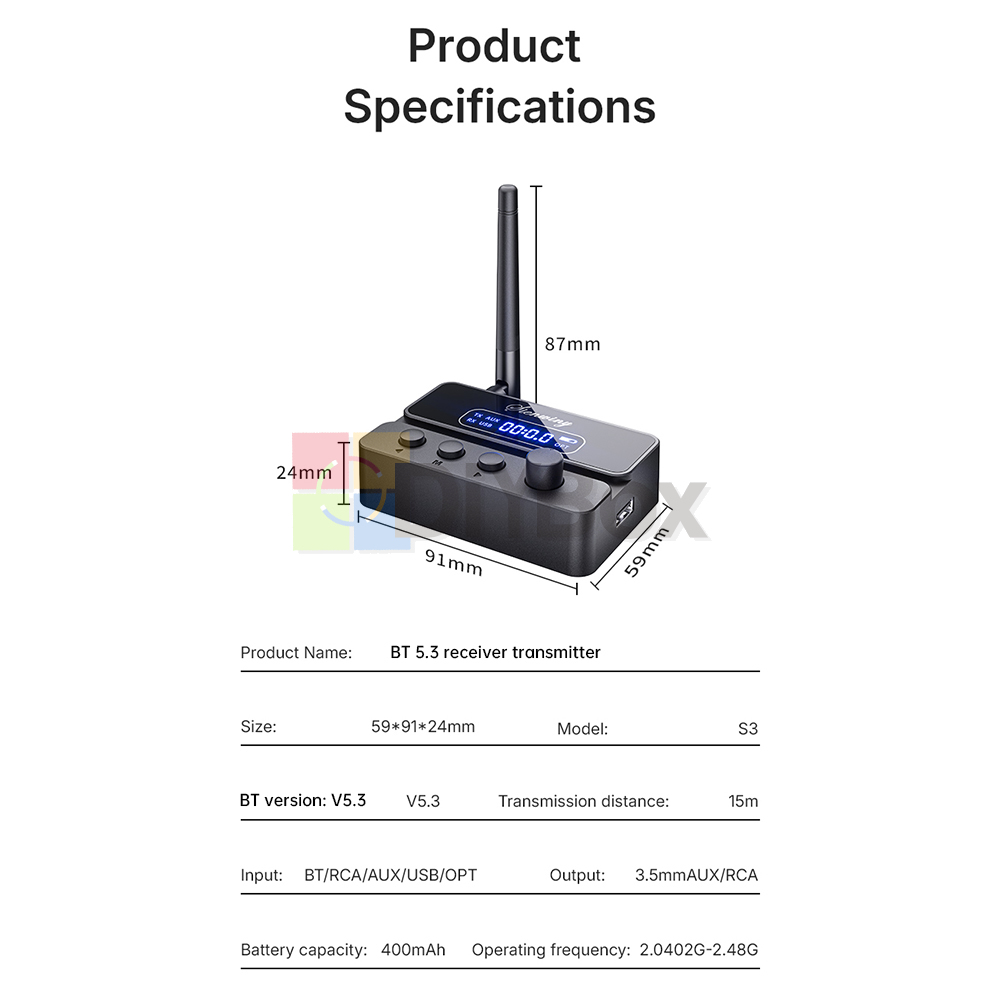 BT5.3 Receiver/Transmitter S3 Transmitter Hi-Fi Audio Transmission Audio Adapter