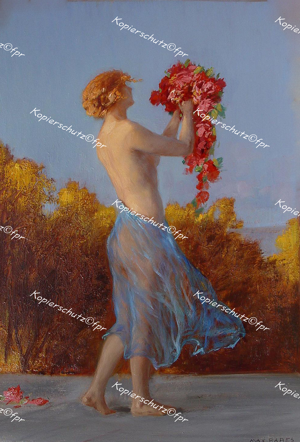 "Blumenmädchen" hochwertiges Faksimile in Gicléedruck mit weißem Rand auf 250g Schwarzwaldmühle Kunstdruck-Karton (30x21cm) nach einem Gemälde von Max Rabes