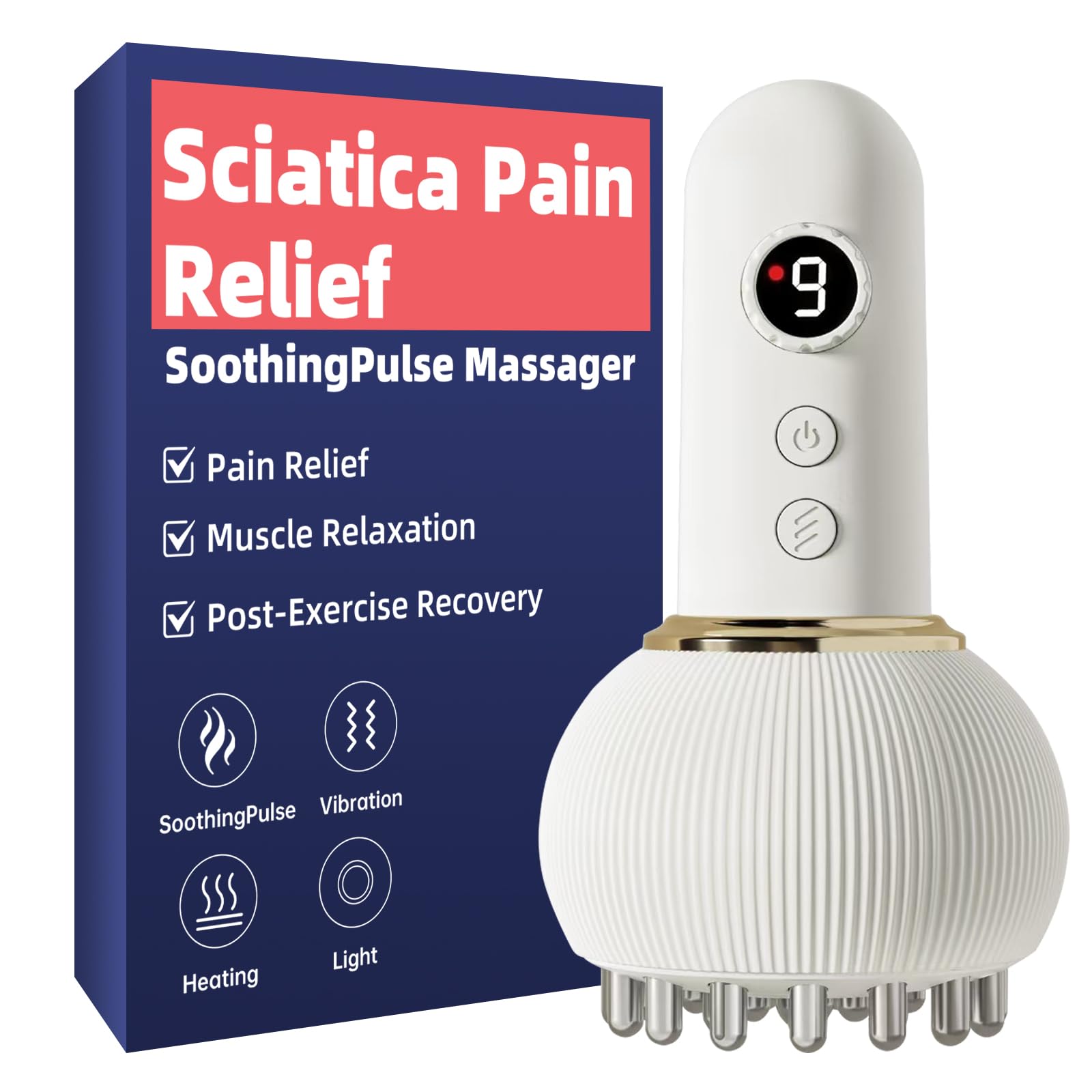 Comprehensive Sciatica Pain Relief: This SoothingPulse massager is a sciatica pain relief device designed to target sciatica, sciatic nerve pain, lower back, and leg pain. Its combination of pulse, heat, vibration, and light therapy provides deep tissue relief for sciatica pain, helping to reduce inflammation, ease muscle tension, and improve circulation.