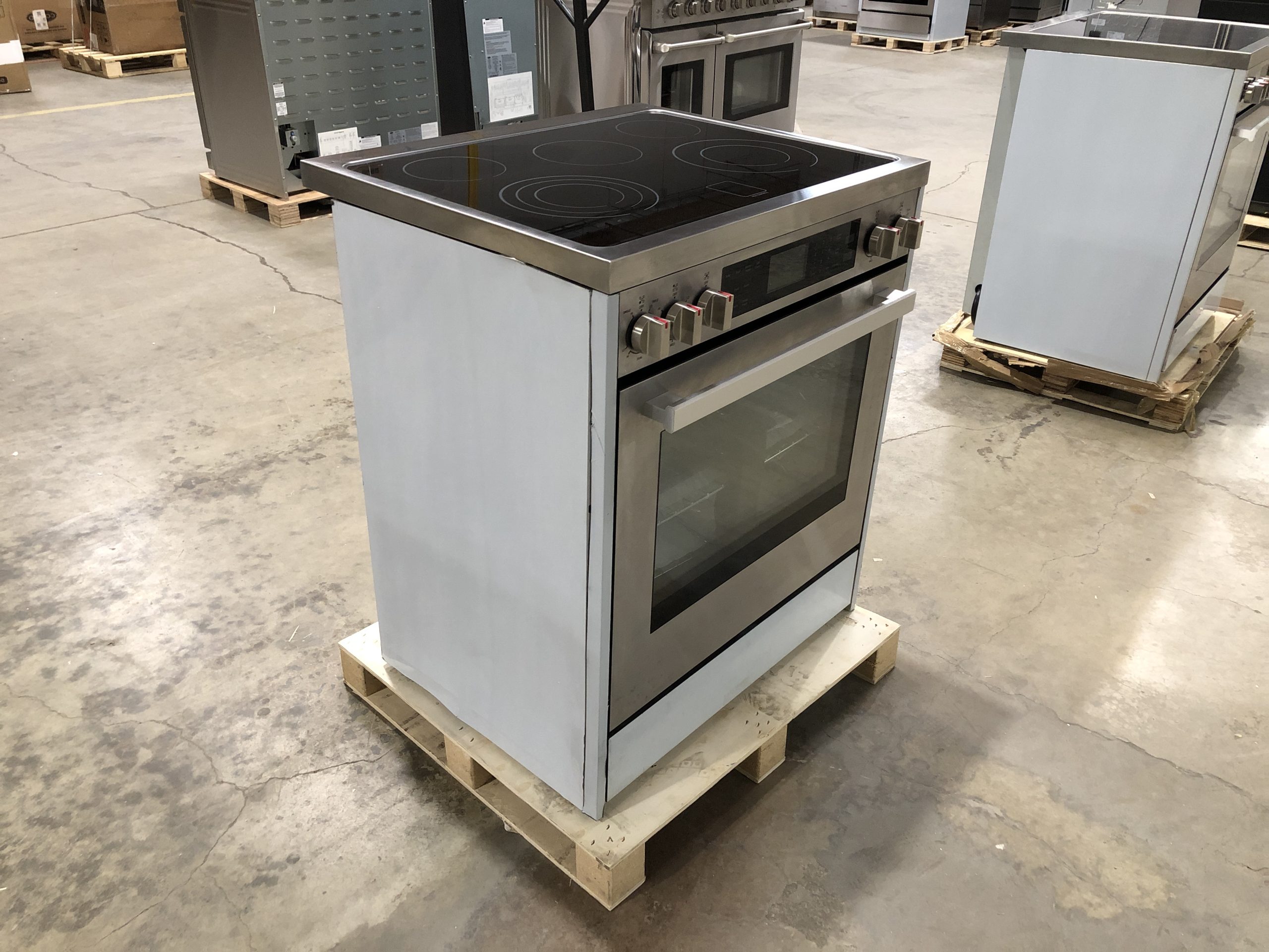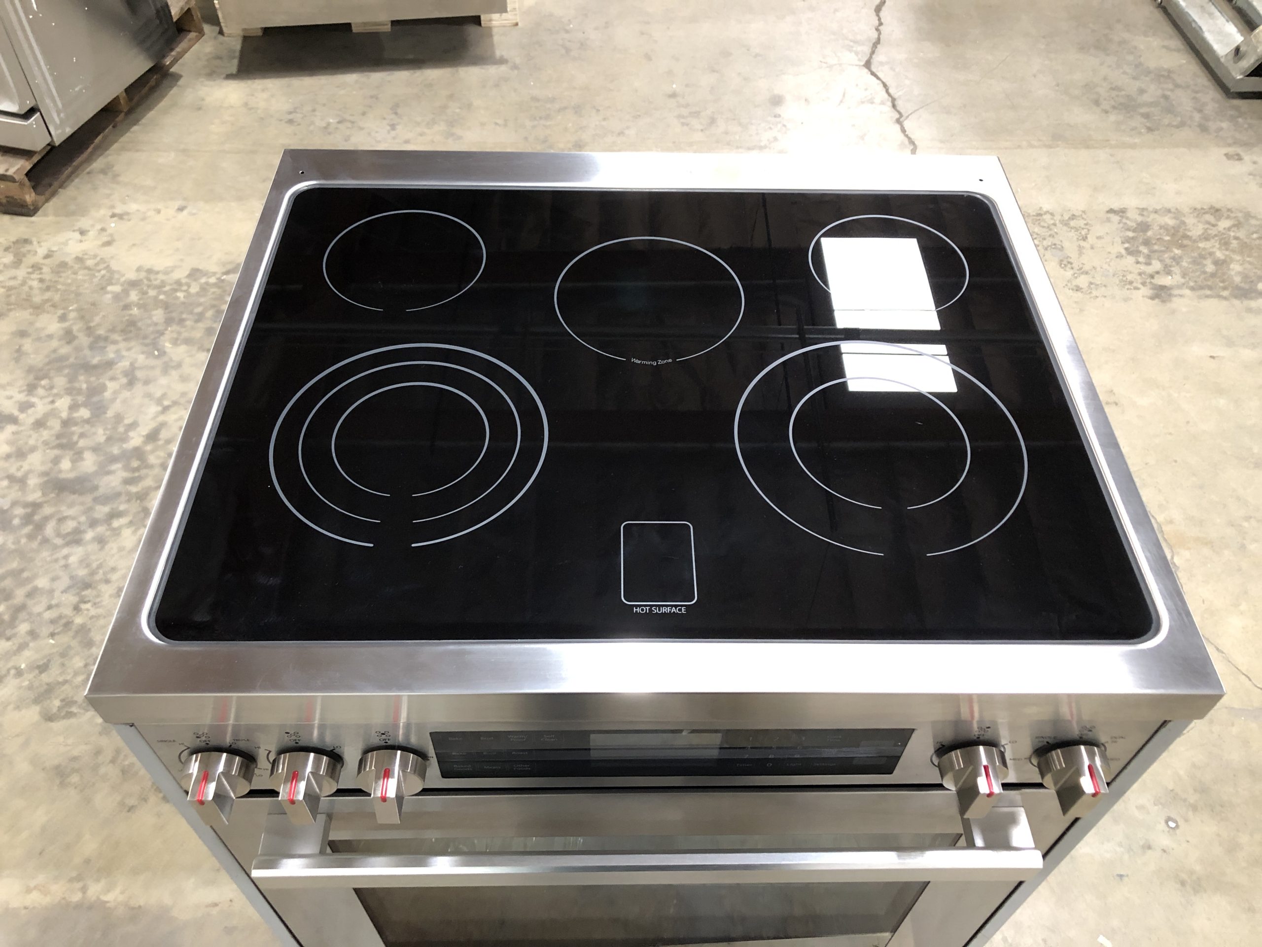 Refine your culinary skills when you cook with Cosmo’s COS-CREA503 30 inch Free Standing Electric Range. This range features a 5-burner smooth glass ceramic cooktop, which includes one triple ring burner, one dual ring burner, and a warming zone. Two select-a-size burners allow you to customize your cooking surface to your needs. The oven is equipped with Turbo True European Convection and seven different oven functions so you can cook your way to unforgettable dishes, and achieve delicious results every time. The oven is also equipped with a precision temperature probe to ensure perfectly cooked meats- simply insert it and program the control to the desired temperature. No more guesswork. The oven also has a self-cleaning function to save you time and energy.