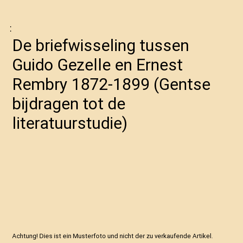 De briefwisseling tussen Guido Gezelle en Ernest Rembry 1872-1899 (Gentse bijdragen tot de literatuurstudie)