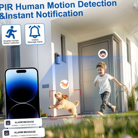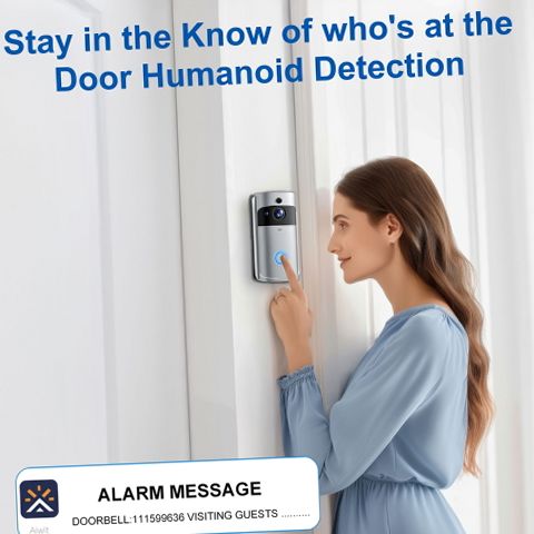 The ZHAOGE 2PCS Wireless Video Doorbell Kit is designed to enhance your home security with advanced features and user-friendly installation. Equipped with 720p HD video resolution and a 120-degree wide-angle lens, it delivers clear live video feeds day and night, supported by enhanced night vision up to 33 feet. The two-way audio system allows seamless communication with visitors from anywhere via your smartphone. Powered by a robust 7800mAh battery, this doorbell offers up to two months of operation under typical usage without the need for wiring, making installation quick and hassle-free within three minutes. Its IP65-rated weatherproof housing ensures reliable performance in rain, snow, or harsh outdoor conditions. The device connects exclusively to 2.4GHz Wi-Fi networks for stable streaming and supports optional cloud storage for video recordings. Advanced AI-powered human motion detection triggers instant alerts and activates an integrated siren alarm if tampering is detected, providing an effective anti-theft mechanism. Flexible mounting options include no-drill adhesive tape or screw installation, ideal for renters or those seeking non-permanent setups. Suitable for both indoor and outdoor surveillance, this wireless video doorbell kit offers comprehensive protection tailored to residential needs.
