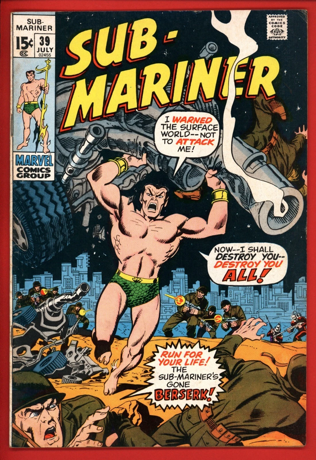 Up for sale is a copy of Sub-Mariner #39 accurately graded 5.0 VG/FN. There is foxing on the covers. This will be packaged securely between thick sheets of cardboard and shipped via USPS ground advantage mail. I do combine shipping on multiple items; feel free to email with any questions.