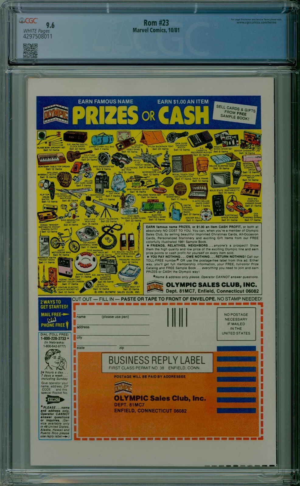 Up for sale is a copy of ROM #23 graded 9.6 NM+ with white pages by CGC. This will be packaged securely between thick sheets of cardboard and bubble wrap and shipped in a box via USPS priority mail. I do combine shipping on multiple items; feel free to email with any questions.