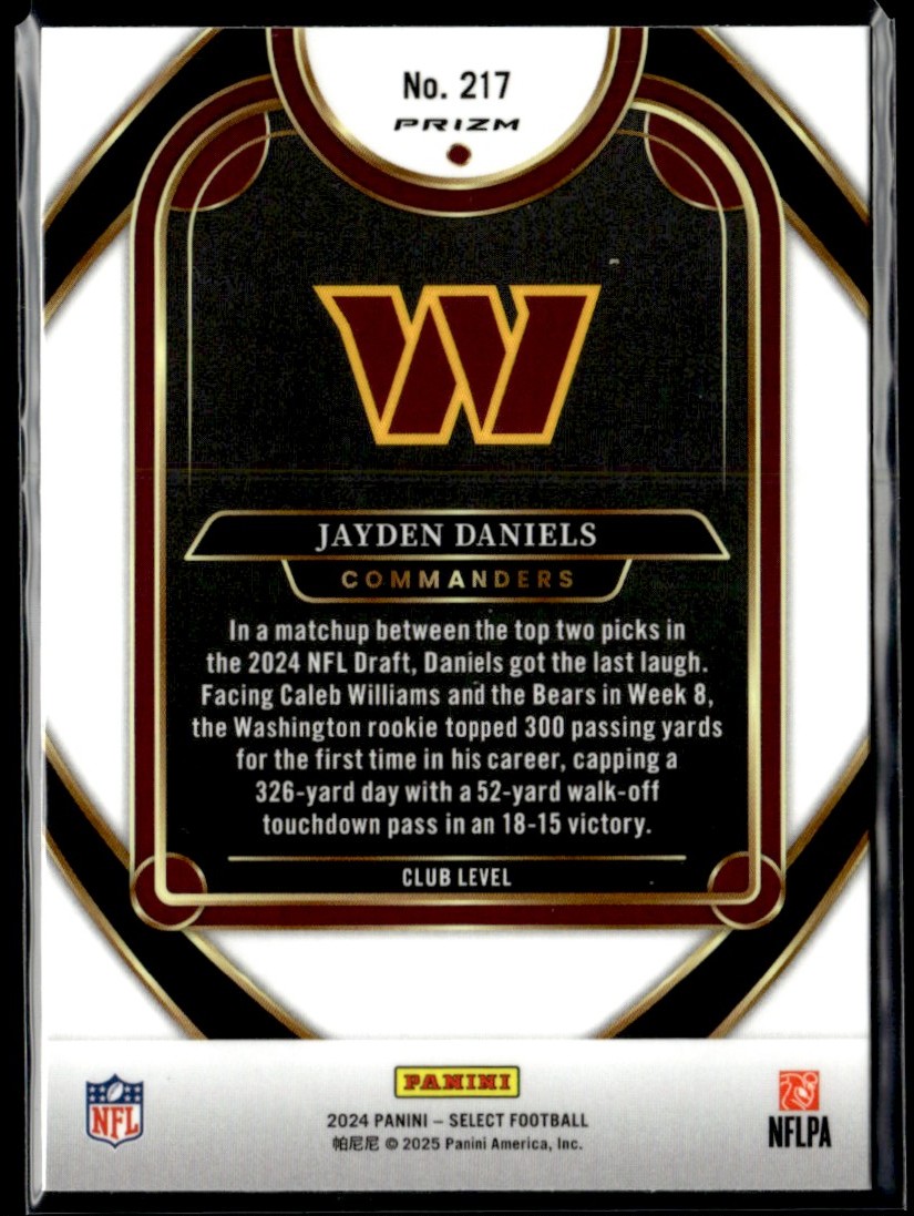 2024 Panini Select Black Green Jayden Daniels RC Washington Commanders #217