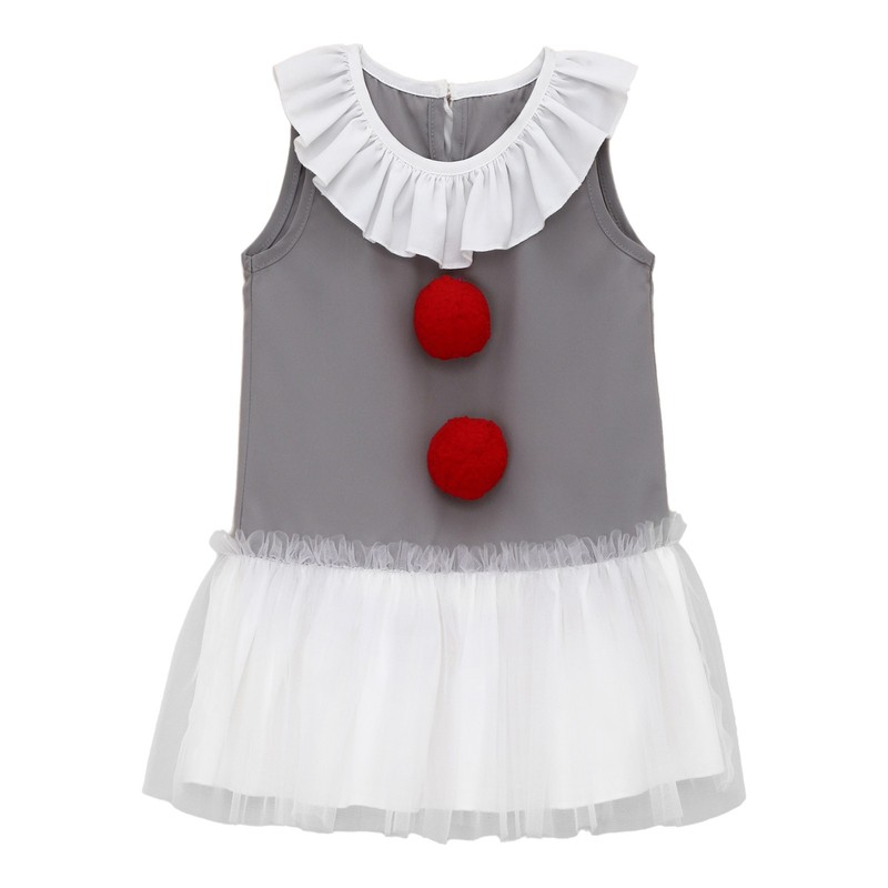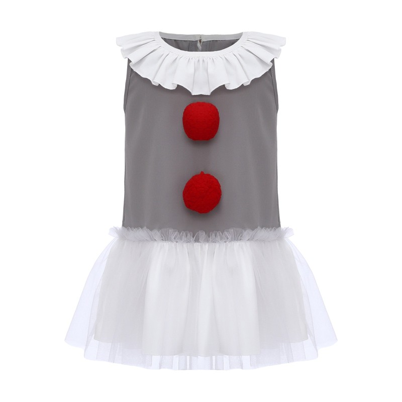 The pom-pom details on the dress are eye-catching and add a festive and charming element, perfect for creating an adorable clown look.