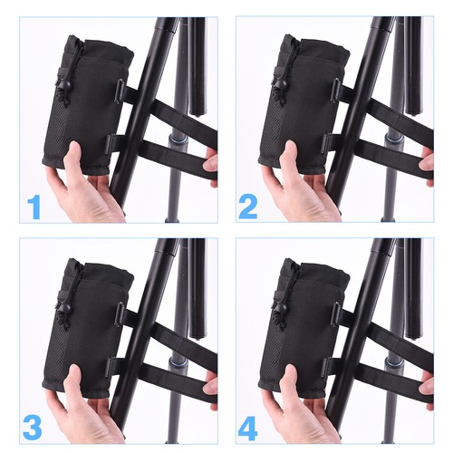 3. Holds Securely - The two adjustable self-fastening straps are reinforced to hold the cup holder in place. Drawstring Closure to tighten the opening and secure the items inside during a rough ride