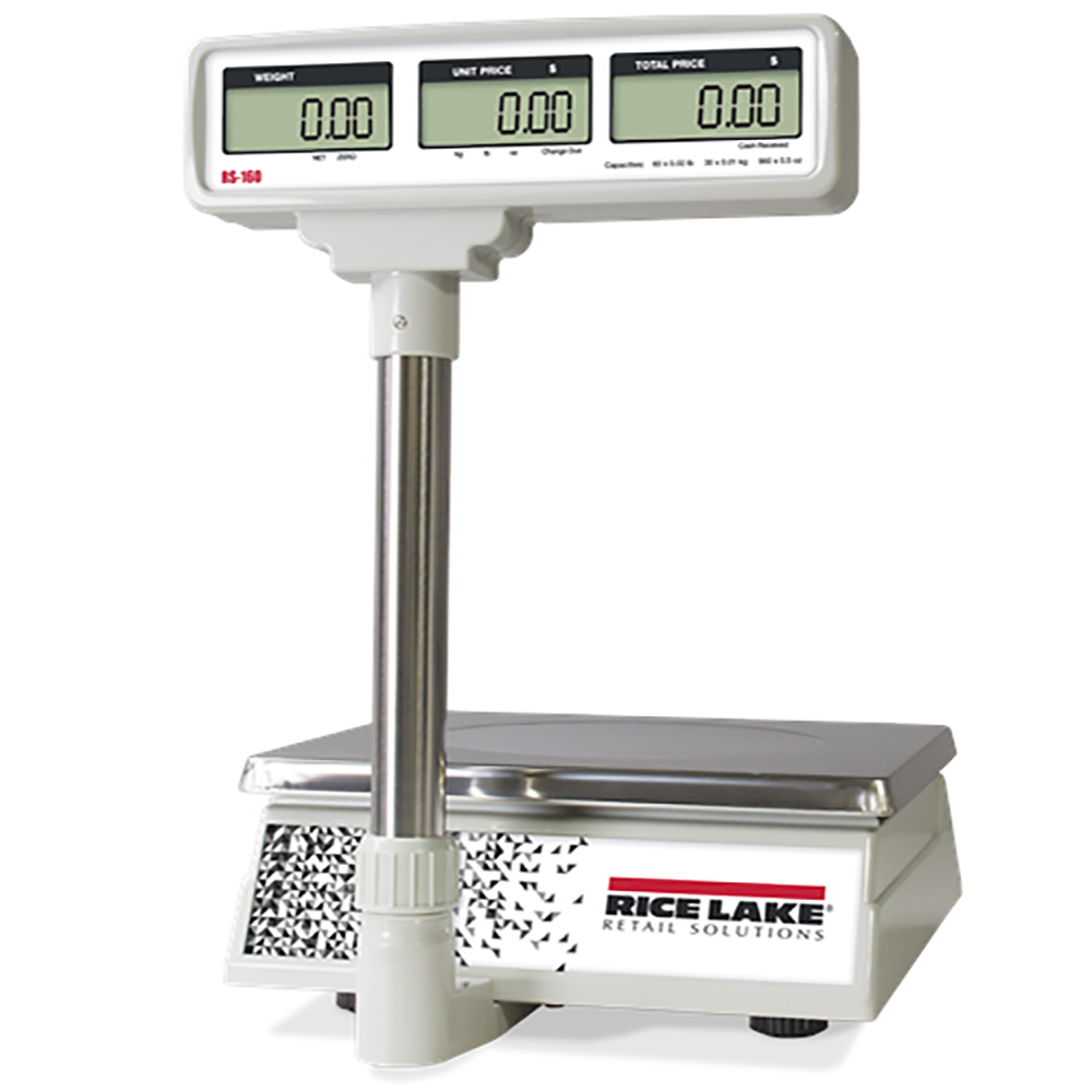 The RS-130 and RS-160 retail scales are the ultimate choice for simple price computing applications. Delivering unmatched convenience and accuracy, the RS-130 and RS-160 provide one-button operation with weight displays in either pounds, kilograms or ounces. For added convenience, the RS-130 and RS-160 can toggle units of measure and save tare, price and nine direct price lookups. Cash back calculation allows you to quickly provide cash back for applications where a cash register is not present. The scales’ large, stainless steel platters provide ample room for product, and standard in-use covers assure years of troublefree operation. The RS-130 and RS-160 are NTEP Certified and powered by an included rechargeable battery. A low-battery annunciator signals the operator when it’s time to recharge. The RS-130 and RS-160 offer the most accurate, portable and affordable solutions for simple price computing needs.