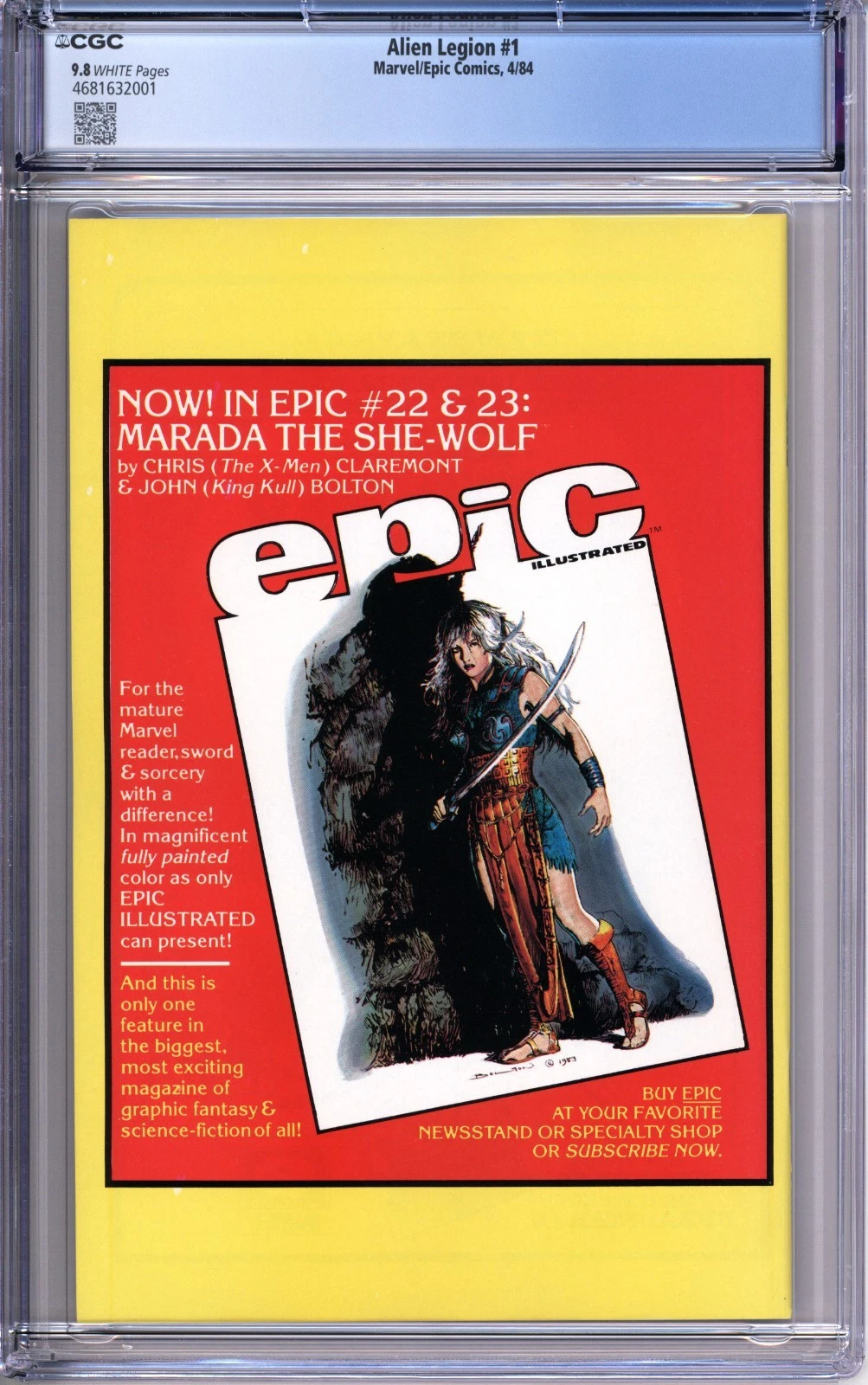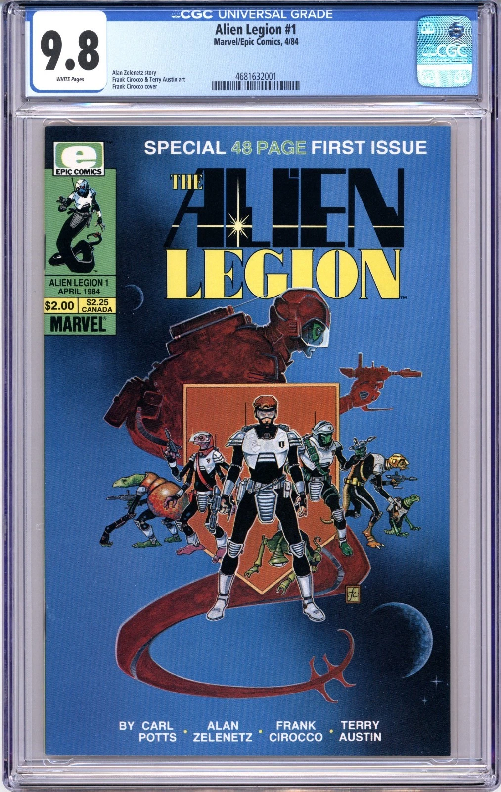 Up for sale is a copy of Alien Legion #1 graded 9.8 NM/MT with white pages by CGC. This will be packaged securely between thick sheets of cardboard and bubble wrap and shipped in a box via USPS priority mail. I do combine shipping on multiple items; feel free to email with any questions.