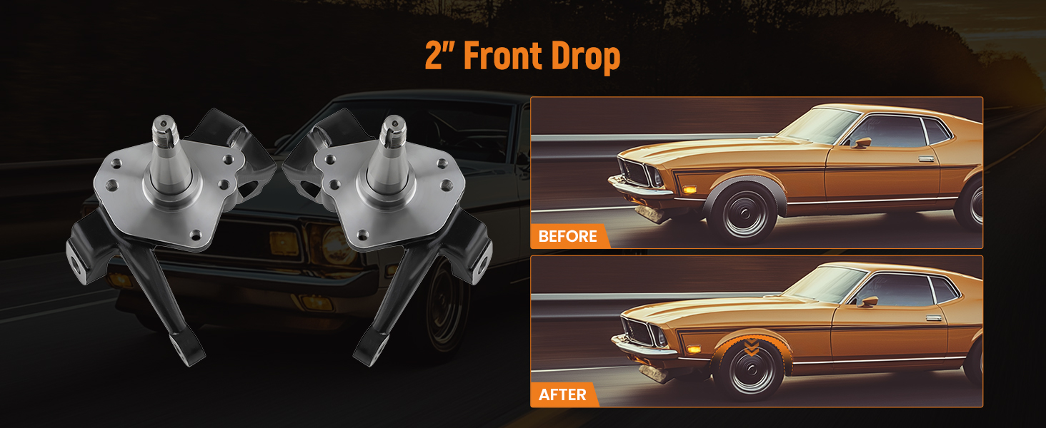 2" Front Left & Right Drop Spindles For Ford Mustang II Pinto 1974-1978