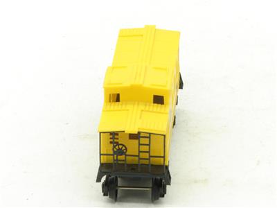 Caboose in good overall condition. Car body is free of cracks, chips, and breaks but does have some light scuffs and scratches. Lettering is good on both sides. Lower trim level car with no smoke stack and riding on plastic wheels. Coupler works but does not pop open on it's own when the pin is pulled. Car has the blackened metal style "thumb tack" coupler release.