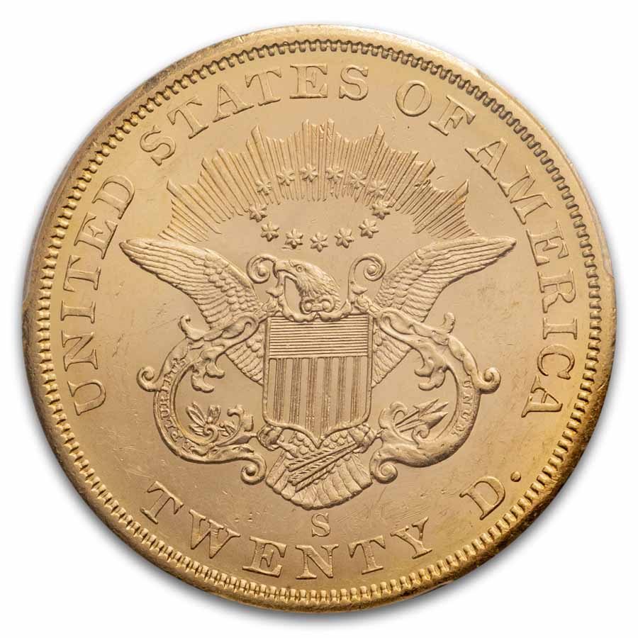 This coin will make a great addition to any collection. Add this 1856-S $20 Liberty Gold S.S. Central America No Serif, Full A coin to your cart today!