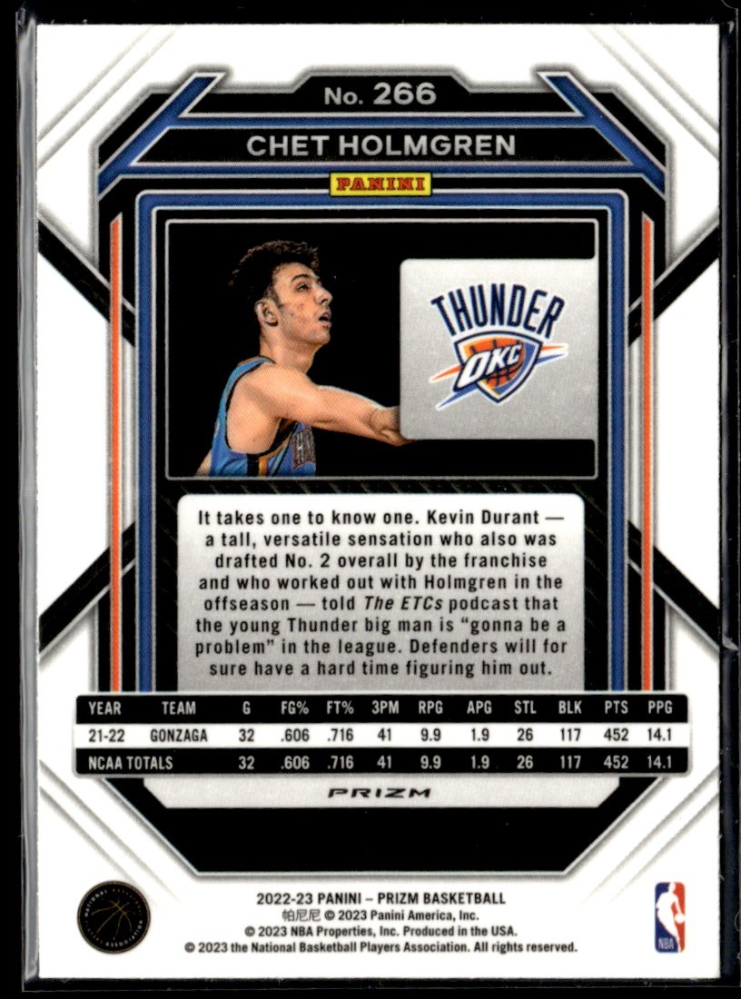 2022-23 Panini Prizm Cracked Ice Chet Holmgren RC Oklahoma City Thunder #266