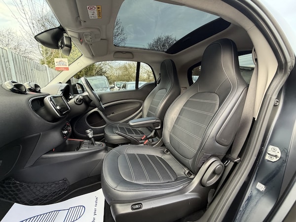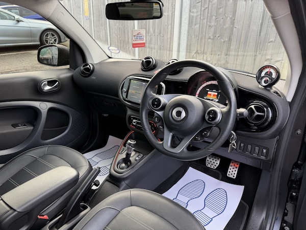We are proud to present this Smart Fortwo BLUEDAWN edition finished in SAPPHIRE MATTE BLUE over FULL BLACK LEATHER SEATS, what a combo this is! We must admit this colourway looks absolutely fantastic, mix in the LED front and rear lights, the BRABUS side skirts and BLACK ALLOYS this is one cool looking smart car! Having a 17.6kWh battery this smart car its perfect for city or town living due to its compact size and range of up to 100 miles it makes parking in busy places 10 times easier! The SPEC on this car is fantastic boasting of REVERSING CAMERA, DAB, BLUETOOTH, ALLOYS, AC, PARKING SENSORS and much more! This car has been cherished by its previous owners and boasts of SERVICE HISTORY, 2 KEY'S and a great overall condition! PLATE NOT INCLUDED £99 ADMIN FEE on all purchases. Having just arrived this vehicle will be going through our prep process which consists of up to 12 MONTHS MOT, PDI, SERVICE to ensure it is ready for its new owner. FANTASTIC finance rates available ENQUIRE TODAY. ALL car's are sold with 3 months warranty with the option to EXTEND to 6-24 months, please enquire for more details!