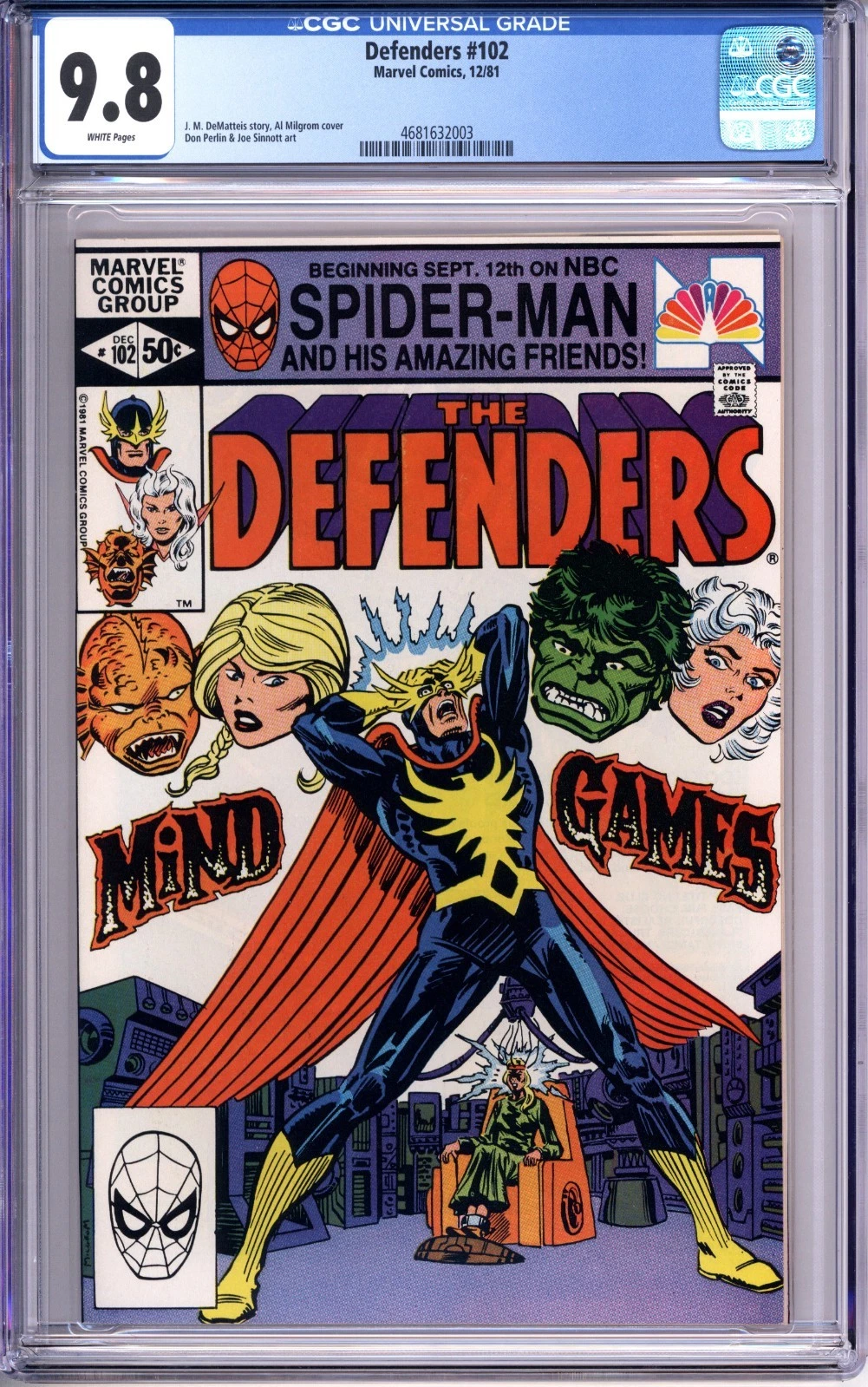 Up for sale is a copy of the Defenders #102 graded 9.8 NM/MT with white pages by CGC. This will be packaged securely between thick sheets of cardboard and bubble wrap and shipped in a box via USPS priority mail. I do combine shipping on multiple items; feel free to email with any questions.