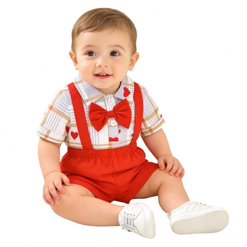 Heart print and plaid patterns are trendy and eye-catching, creating a cute and fashionable look for your baby boy.