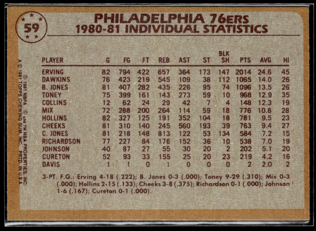 1981-82 Topps Julius Erving/Bobby Jones/Maurice Cheeks Philadelphia 76ers #59