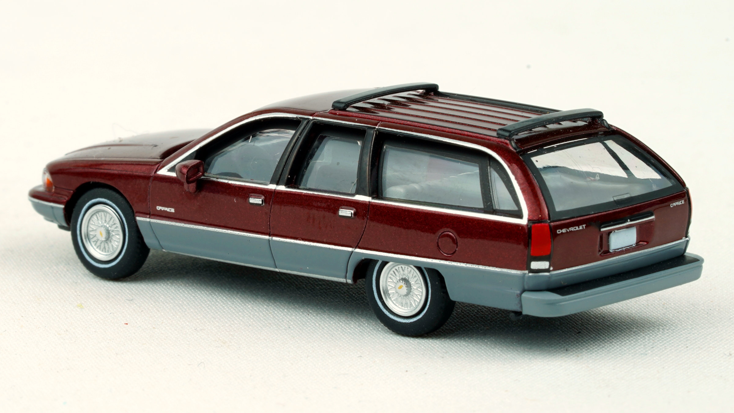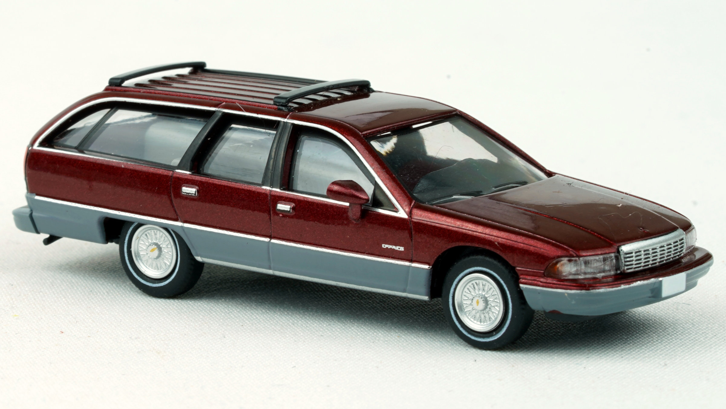 Metallic maroon and gray paint Black interior upholstery Aluminum color wheel covers Photo etch hood ornament Roof mounted luggage rack April 2025 release New in box In stock, ready to ship! SKU #PCX870807 Please Note: This HO scale model is about 2" long. Shown several times larger than actual size.